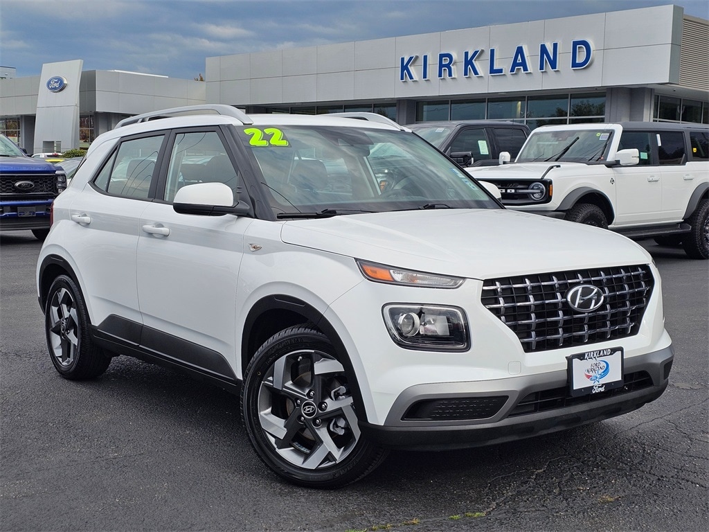 Clean CARFAX. CARFAX One-Owner. Hyundai Certified Used Vehicles Certified, 4-Wheel Disc Brakes, 6 Speakers, 6.052 Axle Ratio, 6.5J x 17" Alloy Wheels, ABS brakes, Air Conditioning, Alloy wheels, AM/FM radio, Apple CarPlay & Android Auto, Auto High-beam Headlights, Automatic temperature control, Brake assist, Bumpers: body-color, Cargo Blocks, Cargo Net, Cargo Package, Cargo Tray, Carpeted Floor Mats, Cloth Seat Trim, Delay-off headlights, Driver door bin, Driver vanity mirror, Dual front impact airbags, Dual front side impact airbags, Electronic Stability Control, Front anti-roll bar, Front Bucket Seats, Front Center Armrest, Front wheel independent suspension, Fully automatic headlights, Illuminated entry, Leather Shift Knob, Leather steering wheel, Low tire pressure warning, Occupant sensing airbag, Option Group 01, Outside temperature display, Overhead airbag, Overhead console, Panic alarm, Passenger door bin, Passenger vanity mirror, Power door mirrors, Power moonroof, Power steering, Power windows, Radio: AM/FM/HD Display Audio, Rear window defroster, Rear window wiper, Remote keyless entry, Roof rack: rails only, Security system, Speed control, Speed-sensing steering, Split folding rear seat, Spoiler, Steering wheel mounted audio controls, Tachometer, Telescoping steering wheel, Tilt steering wheel, Traction control, Trip computer, Variably intermittent wipers. 2022 Hyundai Venue SEL I4 CVT FWD 4D Sport Utility Ceramic White Certified. Hyundai Certified Used Vehicles Details: