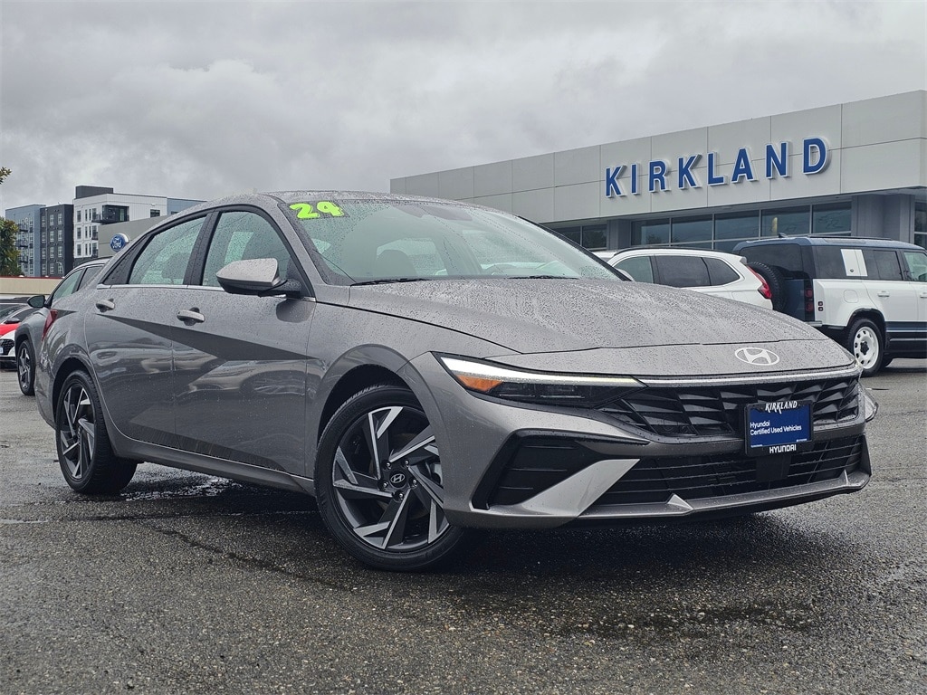 CARFAX One-Owner. Odometer is 7366 miles below market average! HYUNDAI CERTIFED PRO-OWNED, Hyundai Certified Used Vehicles Certified, 16" x 6.5J Alloy Wheels, 4-Wheel Disc Brakes, 6 Speakers, 60/40 Split Fldng Rr Seatback w/Armrest & Cup Hld, ABS brakes, Air Conditioning, Alloy wheels, AM/FM radio: SiriusXM, Apple CarPlay & Android Auto, Auto High-beam Headlights, Automatic temperature control, Brake assist, Bumpers: body-color, Cargo Net, Carpeted Floor Mats, Cloth Seat Trim, Convenience Package, Delay-off headlights, Driver door bin, Driver vanity mirror, Dual front impact airbags, Dual front side impact airbags, Dynamic Voice Recognition, Electronic Parking Brake, Electronic Stability Control, Emergency communication system: Bluelink+, Exterior Parking Camera Rear, First Aid Kit, Forward Collision Avoidance Assist, Front anti-roll bar, Front Bucket Seats, Front Center Armrest, Front dual zone A/C, Front reading lights, Front wheel independent suspension, Fully automatic headlights, Heated Front Seats, Heated Outside Mirrors, Illuminated entry, Leather-Wrapped Steering Wheel, Low tire pressure warning, Mudguards, Navigation System, Occupant sensing airbag, Option Group 02, Outside temperature display, Overhead airbag, Overhead console, Panic alarm, Passenger door bin, Passenger vanity mirror, Power door mirrors, Power steering, Power windows, Radio: AM/FM/HD/SiriusXM Display Audio, Rear side impact airbag, Rear window defroster, Remote keyless entry, Reversible Cargo Tray, Security system, Smart Cruise Control w/Stop & Go, Speed control, Speed-sensing steering, Steering wheel mounted audio controls, Tachometer, Telescoping steering wheel, Tilt steering wheel, Traction control, Trip computer, Variably intermittent wipers, Wheels: 17" x 7.0J Machine Finish Alloy, Wireless Charging Pad (QI). 2024 Hyundai Elantra SEL I4 CVT FWD 4D Sedan Fluid Metal Certified. Hyundai Certified Used Vehicles Details: