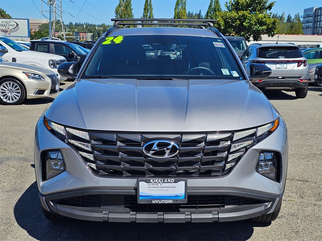 Clean CARFAX. CARFAX One-Owner. Odometer is 5177 miles below market average! HYUNDAI CERTIFED PRO-OWNED, AWD, 3.648 Axle Ratio, 4-Wheel Disc Brakes, 6 Speakers, ABS brakes, Air Conditioning, All Season Fitted Liners, Alloy wheels, AM/FM radio: SiriusXM, Apple CarPlay & Android Auto, Auto High-beam Headlights, Auto-dimming Rear-View mirror, Automatic temperature control, Brake assist, Bumpers: body-color, Cargo Net, Cargo Tray, Carpeted Floor Mats, Delay-off headlights, Driver door bin, Driver vanity mirror, Dual front impact airbags, Dual front side impact airbags, Electronic Stability Control, Emergency communication system: Blue Link Connected Car Service (3-year complimentary subscription), Exterior Parking Camera Rear, First Aid Kit, Four wheel independent suspension, Front anti-roll bar, Front Bucket Seats, Front Center Armrest, Front dual zone A/C, Front reading lights, Fully automatic headlights, H-Tex Seat Trim, Heated door mirrors, Heated Front Bucket Seats, Heated front seats, Illuminated entry, Leather Shift Knob, Low tire pressure warning, Navigation System, Occupant sensing airbag, Option Group 01, Outside temperature display, Overhead airbag, Overhead console, Panic alarm, Passenger door bin, Passenger vanity mirror, Power door mirrors, Power driver seat, Power Liftgate, Power steering, Power windows, Radio data system, Radio: AM/FM/HD Audio System, Rear anti-roll bar, Rear reading lights, Rear seat center armrest, Rear side impact airbag, Rear window defroster, Rear window wiper, Remote keyless entry, Roof rack, Security system, Speed control, Split folding rear seat, Spoiler, Steering wheel mounted audio controls, Tachometer, Telescoping steering wheel, Tilt steering wheel, Traction control, Trip computer, Turn signal indicator mirrors, Variably intermittent wipers, Wheels: 19" Black Alloy, AWD. 2024 Hyundai Tucson XRT 2.5L I4 DGI DOHC 16V LEV3-SULEV30 187hp 8-Speed Automatic with SHIFTRONIC AWD 4D Sport Utility Shimmering Silver