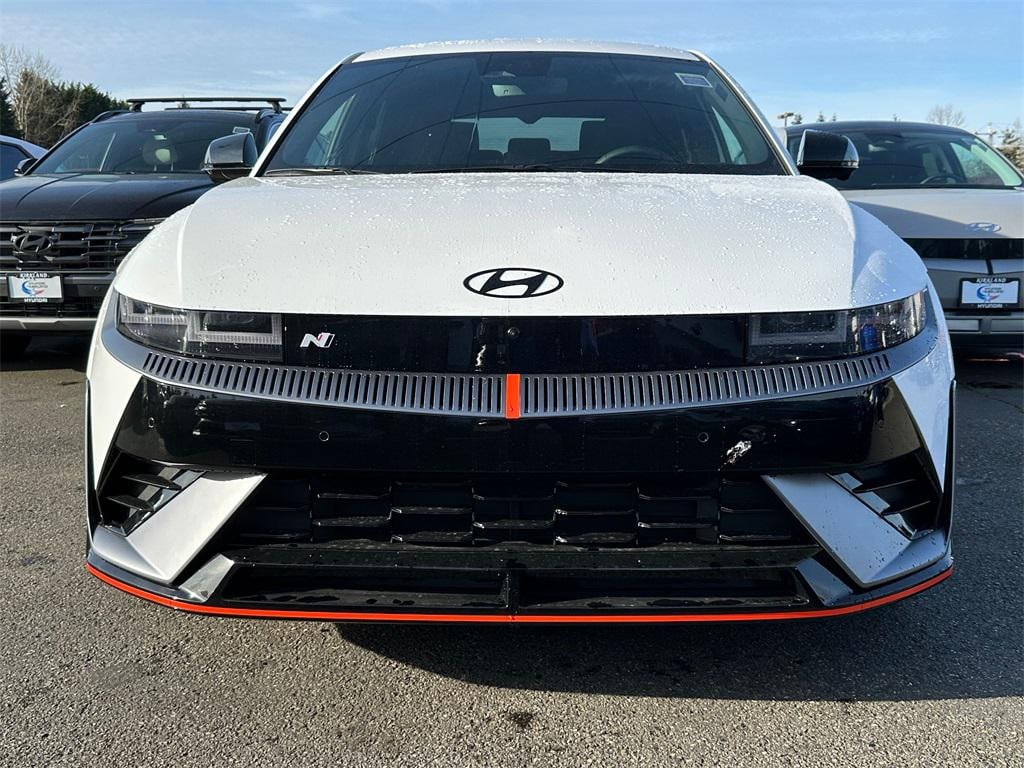 Electric Motor 1-Speed Automatic AWD 4D Sport Utility Atlas White 4-Wheel Disc Brakes, 8 Speakers, ABS brakes, Adaptive suspension, Air Conditioning, Alloy wheels, AM/FM radio: SiriusXM, Apple CarPlay & Android Auto, Auto High-beam Headlights, Auto-dimming Rear-View mirror, Automatic temperature control, Bodyside moldings, Brake assist, Bumpers: body-color, Delay-off headlights, Driver door bin, Driver vanity mirror, Dual front impact airbags, Dual front side impact airbags, Eco Alcantara/H-Tex Seating Surfaces, Electronic Stability Control, Emergency communication system: Bluelink+, Four wheel independent suspension, Front anti-roll bar, Front Bucket Seats, Front Center Armrest w/Storage, Front dual zone A/C, Front reading lights, Fully automatic headlights, Garage door transmitter: HomeLink, Heated & Ventilated N Lightweight Sport Bucket Seats, Heated door mirrors, Heated front seats, Heated steering wheel, Illuminated entry, Leather steering wheel, Low tire pressure warning, Navigation System, Occupant sensing airbag, Option Group 01, Outside temperature display, Overhead airbag, Panic alarm, Passenger door bin, Passenger vanity mirror, Power door mirrors, Power Liftgate, Power steering, Power windows, Radio: AM/FM/SiriusXM/HD Display Audio System, Rain sensing wipers, Rear anti-roll bar, Rear reading lights, Rear seat center armrest, Rear window defroster, Rear window wiper, Remote keyless entry, Security system, Speed control, Speed-sensing steering, Split folding rear seat, Spoiler, Steering wheel mounted audio controls, Telescoping steering wheel, Tilt steering wheel, Traction control, Trip computer, Turn signal indicator mirrors, Variably intermittent wipers, Ventilated front seats, Wheels: 21" x 9.5J Forged N Alloy.