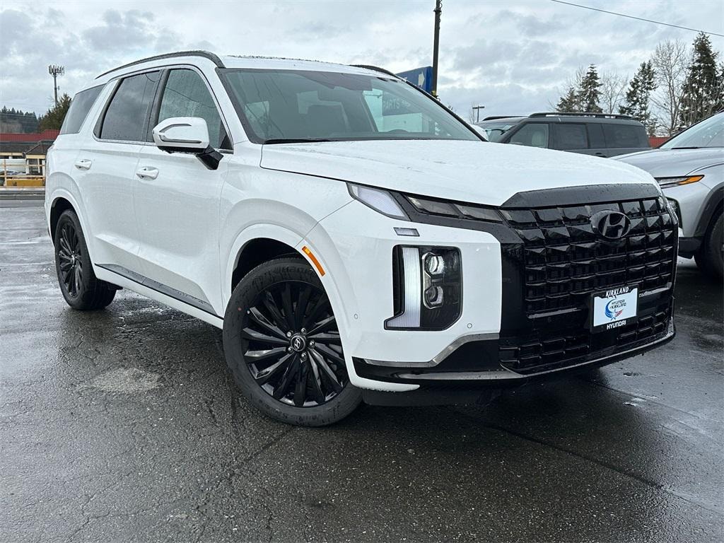 V6 8-Speed Automatic with SHIFTRONIC AWD 4D Sport Utility Hyper White 12 Speakers, 3rd row seats: split-bench, 4-Wheel Disc Brakes, ABS brakes, Air Conditioning, All-Season Fitted Liners, Alloy wheels, AM/FM radio: SiriusXM, Apple CarPlay & Android Auto, Auto High-beam Headlights, Auto-dimming door mirrors, Auto-dimming Rear-View mirror, Auto-leveling suspension, Automatic temperature control, Brake assist, Bumpers: body-color, Cargo Blocks, Cargo Net, Cargo Tray, Carpeted Floor Mats, Compass, Delay-off headlights, Driver door bin, Driver vanity mirror, Dual front impact airbags, Dual front side impact airbags, Electronic Stability Control, Emergency communication system, Exterior Parking Camera Rear, Four wheel independent suspension, Front anti-roll bar, Front Bucket Seats, Front Center Armrest, Front dual zone A/C, Front reading lights, Fully automatic headlights, Garage door transmitter: HomeLink, harman/kardon® Speakers, Heads-Up Display, Heated & Ventilated Front Bucket Seats, Heated door mirrors, Heated front seats, Heated rear seats, Heated steering wheel, Illuminated entry, Knee airbag, Leather steering wheel, Low tire pressure warning, Memory seat, Microfiber Suede Seat Trim, Navigation System, Occupant sensing airbag, Option Group 01, Outside temperature display, Overhead airbag, Overhead console, Panic alarm, Passenger door bin, Passenger vanity mirror, Power door mirrors, Power driver seat, Power Liftgate, Power moonroof, Power passenger seat, Power steering, Power windows, Radio data system, Radio: AM/FM/MP3 Premium Audio System, Rain sensing wipers, Rear air conditioning, Rear anti-roll bar, Rear audio controls, Rear reading lights, Rear side impact airbag, Rear window defroster, Rear window wiper, Reclining 3rd row seat, Remote keyless entry, Roof rack, Security system, Speed control, Speed-sensing steering, Split folding rear seat, Spoiler, Steering wheel mounted audio controls, Tachometer, Telescoping steering wheel, Tilt steering wheel, Traction control, Trip computer, Turn signal indicator mirrors, Variably intermittent wipers, Ventilated front seats, Ventilated rear seats, Wheel Locks, Wheels: 20" x 7.5J Black Liquid Paint Alloy. Prices good through 5-31-2025. Kirkland Price includes:$3750 - Hyundai HMF Dealer Choice : $3750 discount and 5.49% APR for 24 months. $44.09 per $1000 financed. Available to well qualified buyers who finance through Hyundai Motor Finance. H704.