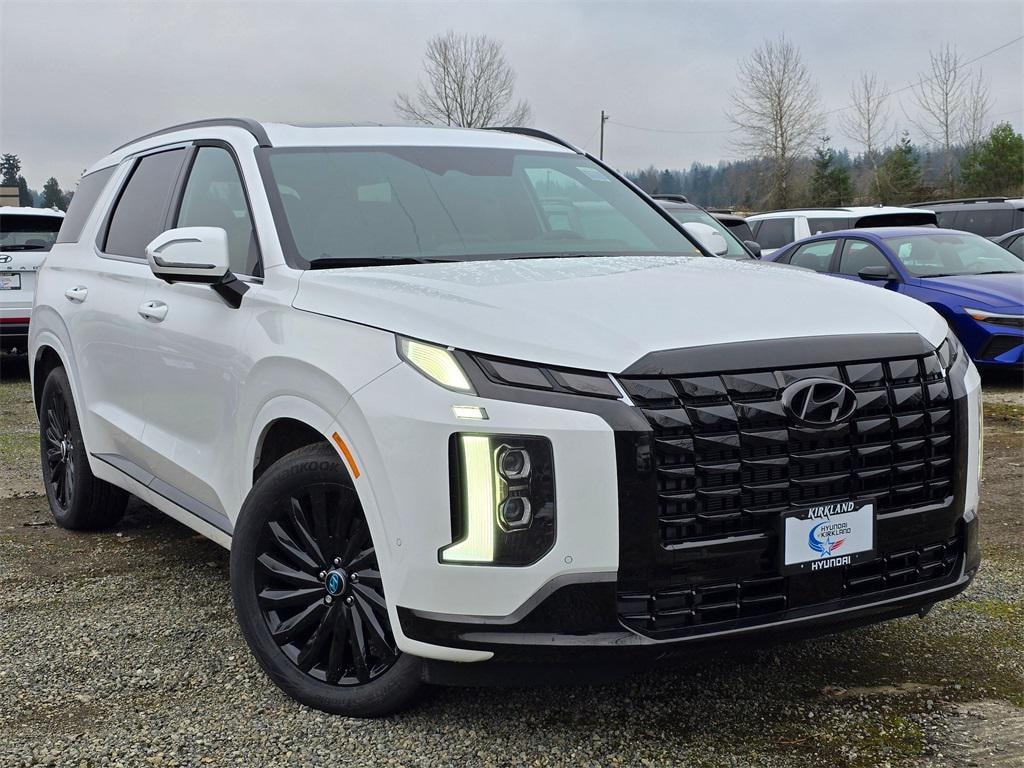 V6 8-Speed Automatic with SHIFTRONIC AWD 4D Sport Utility Hyper White 12 Speakers, 3rd row seats: split-bench, 4-Wheel Disc Brakes, ABS brakes, Air Conditioning, Alloy wheels, AM/FM radio: SiriusXM, Apple CarPlay & Android Auto, Auto High-beam Headlights, Auto-dimming door mirrors, Auto-dimming Rear-View mirror, Auto-leveling suspension, Automatic temperature control, Brake assist, Bumpers: body-color, Cargo Blocks, Cargo Tray, Carpeted Floor Mats, Compass, Cross Rails, Delay-off headlights, Driver door bin, Driver vanity mirror, Dual front impact airbags, Dual front side impact airbags, Electronic Stability Control, Emergency communication system, Exterior Parking Camera Rear, First Aid Kit, Four wheel independent suspension, Front anti-roll bar, Front Bucket Seats, Front Center Armrest, Front dual zone A/C, Front reading lights, Fully automatic headlights, Garage door transmitter: HomeLink, harman/kardon® Speakers, Heads-Up Display, Heated & Ventilated Front Bucket Seats, Heated door mirrors, Heated front seats, Heated rear seats, Heated steering wheel, Illuminated entry, Knee airbag, Leather steering wheel, Low tire pressure warning, Memory seat, Microfiber Suede Seat Trim, Navigation System, Occupant sensing airbag, Option Group 01, Outside temperature display, Overhead airbag, Overhead console, Panic alarm, Passenger door bin, Passenger vanity mirror, Power door mirrors, Power driver seat, Power Liftgate, Power moonroof, Power passenger seat, Power steering, Power windows, Radio data system, Radio: AM/FM/MP3 Premium Audio System, Rain sensing wipers, Rear air conditioning, Rear anti-roll bar, Rear audio controls, Rear Bumper Applique, Rear reading lights, Rear side impact airbag, Rear window defroster, Rear window wiper, Reclining 3rd row seat, Remote keyless entry, Roadside Assistance Kit, Roof rack, Security system, Speed control, Speed-sensing steering, Split folding rear seat, Spoiler, Steering wheel mounted audio controls, Tachometer, Telescoping steering wheel, Tilt steering wheel, Traction control, Trip computer, Turn signal indicator mirrors, Variably intermittent wipers, Ventilated front seats, Ventilated rear seats, Wheel Locks, Wheels: 20" x 7.5J Black Liquid Paint Alloy. Prices good through 5-31-2025. Kirkland Price includes:$3750 - Hyundai HMF Dealer Choice : $3750 discount and 5.49% APR for 24 months. $44.09 per $1000 financed. Available to well qualified buyers who finance through Hyundai Motor Finance. H704.