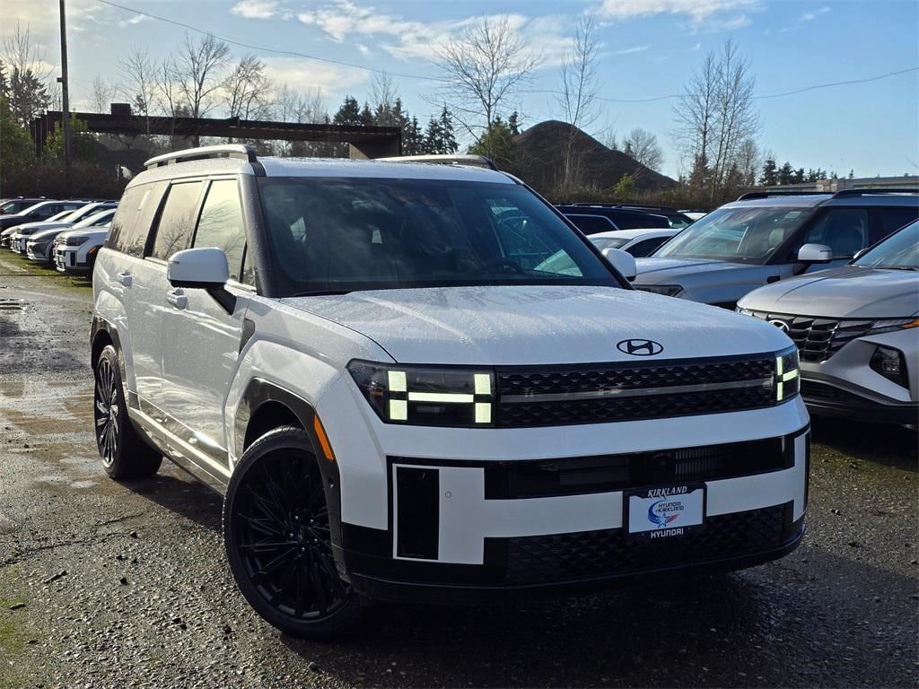 2.5L I4 Shiftronic AWD 4D Sport Utility Serenity White AWD, Black Leather, 12 Speakers, 3rd row seats: bench, 4-Wheel Disc Brakes, ABS brakes, Air Conditioning, Alloy wheels, AM/FM radio: SiriusXM, Apple CarPlay & Android Auto, Auto High-beam Headlights, Auto-dimming Rear-View mirror, Automatic temperature control, Brake assist, Bumpers: body-color, Cargo Cover, Cargo Net, Cargo Tray, Carpeted Floor Mats, Delay-off headlights, Driver door bin, Driver vanity mirror, Dual front impact airbags, Dual front side impact airbags, Electronic Stability Control, Emergency communication system, Exterior Parking Camera Rear, First Aid Kit, Four wheel independent suspension, Front anti-roll bar, Front Bucket Seats, Front Center Armrest, Front dual zone A/C, Front reading lights, Fully automatic headlights, Garage door transmitter: HomeLink, Heads-Up Display, Heated & Ventilated Front Bucket Seats, Heated door mirrors, Heated front seats, Heated rear seats, Heated steering wheel, Illuminated entry, Knee airbag, Leather steering wheel, Low tire pressure warning, Memory seat, Navigation System, Occupant sensing airbag, Option Group 01, Outside temperature display, Overhead airbag, Overhead console, Panic alarm, Passenger door bin, Passenger vanity mirror, Power door mirrors, Power driver seat, Power Liftgate, Power moonroof, Power passenger seat, Power steering, Power windows, Premium Nappa Leather Seat Trim, Radio: AM/FM/HD Bose Premium Audio System, Rain sensing wipers, Rear anti-roll bar, Rear side impact airbag, Rear window defroster, Rear window wiper, Remote keyless entry, Roadside Assistance Kit, Security system, Speed control, Speed-sensing steering, Split folding rear seat, Spoiler, Steering wheel mounted audio controls, Tachometer, Telescoping steering wheel, Tilt steering wheel, Traction control, Transverse Panel, Trip computer, Turn signal indicator mirrors, Variably intermittent wipers, Ventilated front seats, Wheels: 21" x 8.5J Unique Dark Finish Alloy, AWD, Black Leather. Prices good through 5-31-2025. Kirkland Price includes:$4000 - Hyundai HMF Dealer Choice : $4000 discount and 5.49% APR for 24 months. $44.09 per $1000 financed. Available to well qualified buyers who finance through Hyundai Motor Finance. H704.