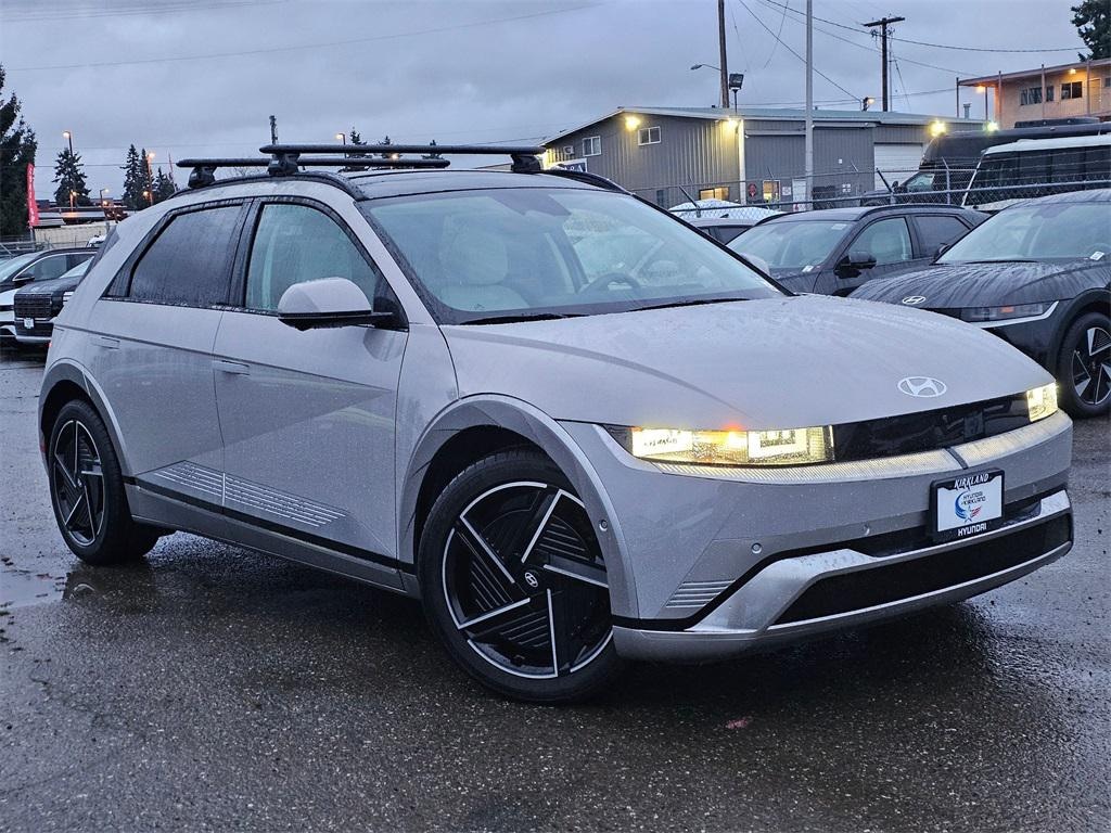 Electric Motor 1-Speed Automatic AWD 4D Sport Utility Cyber Gray 4-Wheel Disc Brakes, 8 Speakers, ABS brakes, Air Conditioning, Alloy wheels, AM/FM radio: SiriusXM, Apple CarPlay & Android Auto, Auto High-beam Headlights, Auto-dimming Rear-View mirror, Automatic temperature control, Bodyside moldings, Brake assist, Bumpers: body-color, Cargo Blocks, Cargo Net, Carpeted Floor Mats, Cross Rails, Delay-off headlights, Driver door bin, Driver vanity mirror, Dual front impact airbags, Dual front side impact airbags, Electronic Stability Control, Emergency communication system: None, First Aid Kit, Four wheel independent suspension, Front anti-roll bar, Front Bucket Seats, Front Center Armrest w/Storage, Front dual zone A/C, Front reading lights, Fully automatic headlights, Garage door transmitter: HomeLink, H-Tex Artificial Leather Seating Surfaces, Heads-Up Display, Heated and Ventilated Front Bucket Seats, Heated door mirrors, Heated front seats, Heated rear seats, Heated steering wheel, Illuminated entry, Low tire pressure warning, Memory seat, Navigation System, Occupant sensing airbag, Option Group 01, Outside temperature display, Overhead airbag, Overhead console, Panic alarm, Passenger door bin, Passenger vanity mirror, Power door mirrors, Power driver seat, Power Liftgate, Power passenger seat, Power steering, Power windows, Radio: AM/FM/SiriusXM/HD Audio System, Rain sensing wipers, Rear anti-roll bar, Rear reading lights, Rear seat center armrest, Rear side impact airbag, Rear window defroster, Rear window wiper, Remote keyless entry, Security system, Speed control, Speed-sensing steering, Split folding rear seat, Spoiler, Steering wheel mounted audio controls, Telescoping steering wheel, Tilt steering wheel, Traction control, Trip computer, Turn signal indicator mirrors, Variably intermittent wipers, Ventilated front seats, Wheels: 20" x 8.5J Alloy. Prices good through 5-31-2025. Kirkland Price includes:$10000 - Hyundai HMF Dealer Choice: $10000 discount and 5.39% APR for 24 months. $44.05 per $1000 financed. Available to well qualified buyers who finance through Hyundai Motor Finance. H704.