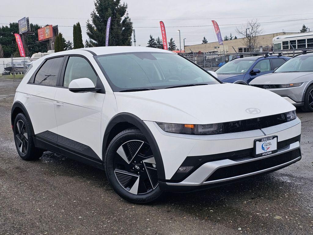 Electric Motor 1-Speed Automatic AWD 4D Sport Utility Atlas White 4-Wheel Disc Brakes, 6 Speakers, ABS brakes, Air Conditioning, Alloy wheels, AM/FM radio: SiriusXM, Apple CarPlay & Android Auto, Auto High-beam Headlights, Auto-dimming Rear-View mirror, Automatic temperature control, Bodyside moldings, Brake assist, Bumpers: body-color, Cargo Net, Carpeted Floor Mats, Delay-off headlights, Driver door bin, Driver vanity mirror, Dual front impact airbags, Dual front side impact airbags, Electronic Stability Control, Emergency communication system: None, First Aid Kit, Four wheel independent suspension, Front anti-roll bar, Front Bucket Seats, Front Center Armrest w/Storage, Front dual zone A/C, Front reading lights, Fully automatic headlights, Garage door transmitter: HomeLink, H-Tex Artificial Leather Seating Surfaces, harman/kardon® Speakers, Heated door mirrors, Heated Front Bucket Seats, Heated front seats, Illuminated entry, Low tire pressure warning, Navigation System, Occupant sensing airbag, Option Group 01, Outside temperature display, Overhead airbag, Overhead console, Panic alarm, Passenger door bin, Passenger vanity mirror, Power door mirrors, Power driver seat, Power Liftgate, Power passenger seat, Power steering, Power windows, Radio: AM/FM/SiriusXM/HD Audio System, Rear anti-roll bar, Rear reading lights, Rear seat center armrest, Rear side impact airbag, Rear window defroster, Rear window wiper, Remote keyless entry, Roadside Assistance Kit, Security system, Speed control, Speed-sensing steering, Split folding rear seat, Spoiler, Steering wheel mounted audio controls, Telescoping steering wheel, Tilt steering wheel, Traction control, Trip computer, Turn signal indicator mirrors, Variably intermittent wipers, Wheels: 19" x 7.5J Alloy. Prices good through 5-31-2025. Kirkland Price includes:$10000 - Hyundai HMF Dealer Choice: $10000 discount and 5.39% APR for 24 months. $44.05 per $1000 financed. Available to well qualified buyers who finance through Hyundai Motor Finance. H704.