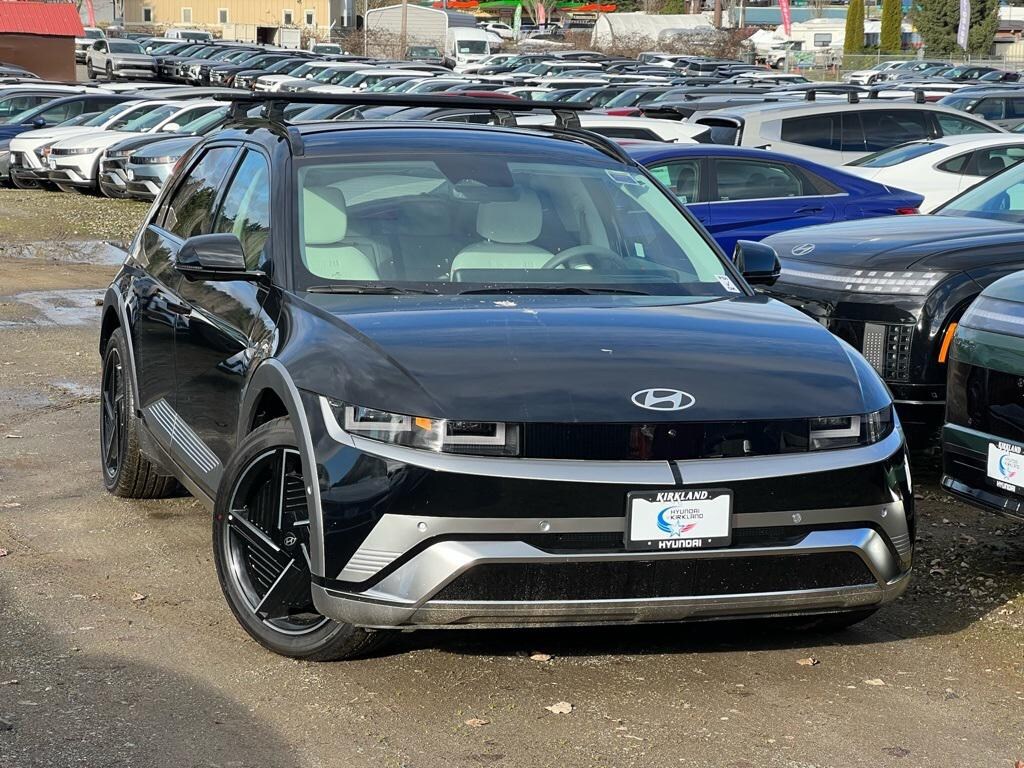 Electric Motor 1-Speed Automatic AWD 4D Sport Utility Abyss Black 4-Wheel Disc Brakes, 8 Speakers, ABS brakes, Air Conditioning, Alloy wheels, AM/FM radio: SiriusXM, Apple CarPlay & Android Auto, Auto High-beam Headlights, Auto-dimming Rear-View mirror, Automatic temperature control, Bodyside moldings, Brake assist, Bumpers: body-color, Cargo Blocks, Cargo Net, Carpeted Floor Mats, Cross Rails, Delay-off headlights, Driver door bin, Driver vanity mirror, Dual front impact airbags, Dual front side impact airbags, Electronic Stability Control, Emergency communication system: None, First Aid Kit, Four wheel independent suspension, Front anti-roll bar, Front Bucket Seats, Front Center Armrest w/Storage, Front dual zone A/C, Front reading lights, Fully automatic headlights, Garage door transmitter: HomeLink, H-Tex Artificial Leather Seating Surfaces, Heads-Up Display, Heated and Ventilated Front Bucket Seats, Heated door mirrors, Heated front seats, Heated rear seats, Heated steering wheel, Illuminated entry, Low tire pressure warning, Memory seat, Navigation System, Occupant sensing airbag, Option Group 01, Outside temperature display, Overhead airbag, Overhead console, Panic alarm, Passenger door bin, Passenger vanity mirror, Power door mirrors, Power driver seat, Power Liftgate, Power passenger seat, Power steering, Power windows, Radio: AM/FM/SiriusXM/HD Audio System, Rain sensing wipers, Rear anti-roll bar, Rear reading lights, Rear seat center armrest, Rear side impact airbag, Rear window defroster, Rear window wiper, Remote keyless entry, Security system, Speed control, Speed-sensing steering, Split folding rear seat, Spoiler, Steering wheel mounted audio controls, Telescoping steering wheel, Tilt steering wheel, Traction control, Trip computer, Turn signal indicator mirrors, Variably intermittent wipers, Ventilated front seats, Wheels: 20" x 8.5J Alloy. Prices good through 5-31-2025. Kirkland Price includes:$10000 - Hyundai HMF Dealer Choice: $10000 discount and 5.39% APR for 24 months. $44.05 per $1000 financed. Available to well qualified buyers who finance through Hyundai Motor Finance. H704.