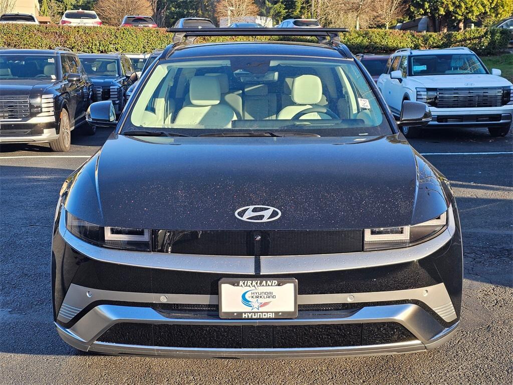 Electric Motor 1-Speed Automatic AWD 4D Sport Utility Abyss Black 4-Wheel Disc Brakes, 8 Speakers, ABS brakes, Air Conditioning, Alloy wheels, AM/FM radio: SiriusXM, Apple CarPlay & Android Auto, Auto High-beam Headlights, Auto-dimming Rear-View mirror, Automatic temperature control, Bodyside moldings, Brake assist, Bumpers: body-color, Cargo Blocks, Cargo Net, Carpeted Floor Mats, Cross Rails, Delay-off headlights, Driver door bin, Driver vanity mirror, Dual front impact airbags, Dual front side impact airbags, Electronic Stability Control, Emergency communication system: None, First Aid Kit, Four wheel independent suspension, Front anti-roll bar, Front Bucket Seats, Front Center Armrest w/Storage, Front dual zone A/C, Front reading lights, Fully automatic headlights, Garage door transmitter: HomeLink, H-Tex Artificial Leather Seating Surfaces, Heads-Up Display, Heated and Ventilated Front Bucket Seats, Heated door mirrors, Heated front seats, Heated rear seats, Heated steering wheel, Illuminated entry, Low tire pressure warning, Memory seat, Navigation System, Occupant sensing airbag, Option Group 01, Outside temperature display, Overhead airbag, Overhead console, Panic alarm, Passenger door bin, Passenger vanity mirror, Power door mirrors, Power driver seat, Power Liftgate, Power passenger seat, Power steering, Power windows, Radio: AM/FM/SiriusXM/HD Audio System, Rain sensing wipers, Rear anti-roll bar, Rear reading lights, Rear seat center armrest, Rear side impact airbag, Rear window defroster, Rear window wiper, Remote keyless entry, Security system, Speed control, Speed-sensing steering, Split folding rear seat, Spoiler, Steering wheel mounted audio controls, Telescoping steering wheel, Tilt steering wheel, Traction control, Trip computer, Turn signal indicator mirrors, Variably intermittent wipers, Ventilated front seats, Wheels: 20" x 8.5J Alloy. Prices good through 5-31-2025. Kirkland Price includes:$10000 - Hyundai HMF Dealer Choice: $10000 discount and 5.39% APR for 24 months. $44.05 per $1000 financed. Available to well qualified buyers who finance through Hyundai Motor Finance. H704.