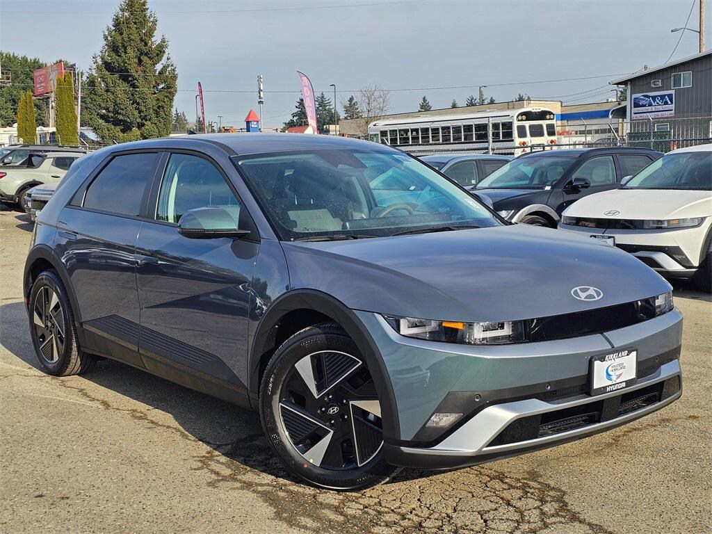 Electric Motor 1-Speed Automatic AWD 4D Sport Utility Digital Teal 4-Wheel Disc Brakes, 6 Speakers, ABS brakes, Air Conditioning, Alloy wheels, AM/FM radio: SiriusXM, Apple CarPlay & Android Auto, Auto High-beam Headlights, Auto-dimming Rear-View mirror, Automatic temperature control, Bodyside moldings, Brake assist, Bumpers: body-color, Cargo Net, Carpeted Floor Mats, Delay-off headlights, Driver door bin, Driver vanity mirror, Dual front impact airbags, Dual front side impact airbags, Electronic Stability Control, Emergency communication system: None, First Aid Kit, Four wheel independent suspension, Front anti-roll bar, Front Bucket Seats, Front Center Armrest w/Storage, Front dual zone A/C, Front reading lights, Fully automatic headlights, Garage door transmitter: HomeLink, H-Tex Artificial Leather Seating Surfaces, harman/kardon® Speakers, Heated door mirrors, Heated Front Bucket Seats, Heated front seats, Illuminated entry, Low tire pressure warning, Navigation System, Occupant sensing airbag, Option Group 01, Outside temperature display, Overhead airbag, Overhead console, Panic alarm, Passenger door bin, Passenger vanity mirror, Power door mirrors, Power driver seat, Power Liftgate, Power passenger seat, Power steering, Power windows, Radio: AM/FM/SiriusXM/HD Audio System, Rear anti-roll bar, Rear reading lights, Rear seat center armrest, Rear side impact airbag, Rear window defroster, Rear window wiper, Remote keyless entry, Roadside Assistance Kit, Security system, Speed control, Speed-sensing steering, Split folding rear seat, Spoiler, Steering wheel mounted audio controls, Telescoping steering wheel, Tilt steering wheel, Traction control, Trip computer, Turn signal indicator mirrors, Variably intermittent wipers, Wheels: 19" x 7.5J Alloy. Prices good through 5-31-2025. Kirkland Price includes:$10000 - Hyundai HMF Dealer Choice: $10000 discount and 5.39% APR for 24 months. $44.05 per $1000 financed. Available to well qualified buyers who finance through Hyundai Motor Finance. H704.