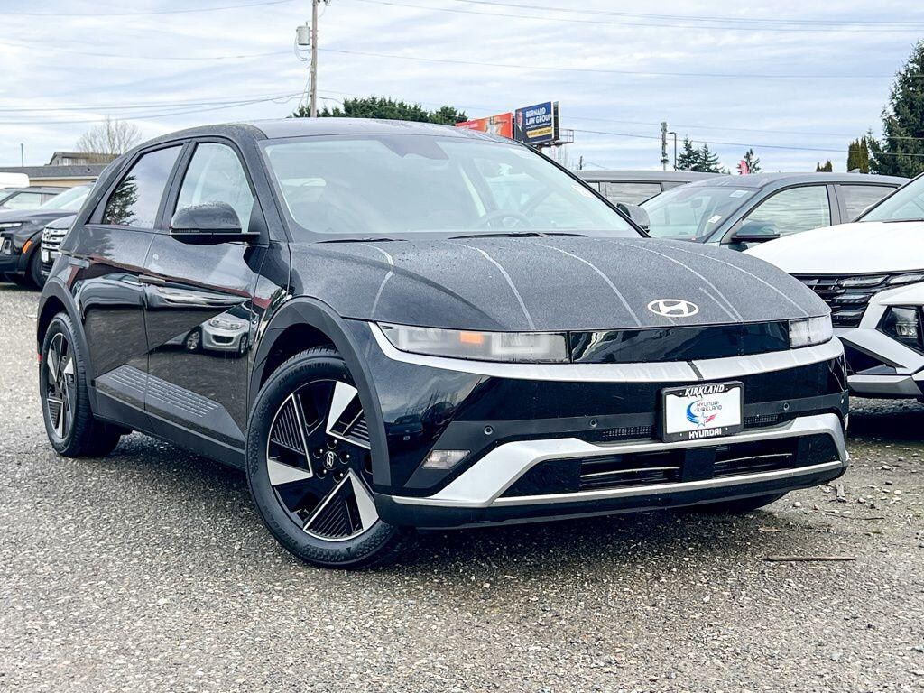 Electric Motor 1-Speed Automatic AWD 4D Sport Utility Abyss Black 4-Wheel Disc Brakes, 6 Speakers, ABS brakes, Air Conditioning, Alloy wheels, AM/FM radio: SiriusXM, Apple CarPlay & Android Auto, Auto High-beam Headlights, Auto-dimming Rear-View mirror, Automatic temperature control, Bodyside moldings, Brake assist, Bumpers: body-color, Cargo Net, Carpeted Floor Mats, Delay-off headlights, Driver door bin, Driver vanity mirror, Dual front impact airbags, Dual front side impact airbags, Electronic Stability Control, Emergency communication system: None, First Aid Kit, Four wheel independent suspension, Front anti-roll bar, Front Bucket Seats, Front Center Armrest w/Storage, Front dual zone A/C, Front reading lights, Fully automatic headlights, Garage door transmitter: HomeLink, H-Tex Artificial Leather Seating Surfaces, harman/kardon® Speakers, Heated door mirrors, Heated Front Bucket Seats, Heated front seats, Illuminated entry, Low tire pressure warning, Mudguards, Navigation System, Occupant sensing airbag, Option Group 01, Outside temperature display, Overhead airbag, Overhead console, Panic alarm, Passenger door bin, Passenger vanity mirror, Power door mirrors, Power driver seat, Power Liftgate, Power passenger seat, Power steering, Power windows, Radio: AM/FM/SiriusXM/HD Audio System, Rear anti-roll bar, Rear reading lights, Rear seat center armrest, Rear side impact airbag, Rear window defroster, Rear window wiper, Remote keyless entry, Security system, Severe Weather Kit, Speed control, Speed-sensing steering, Split folding rear seat, Spoiler, Steering wheel mounted audio controls, Telescoping steering wheel, Tilt steering wheel, Traction control, Trip computer, Turn signal indicator mirrors, Up Seatback Cargo Mat, Variably intermittent wipers, Wheels: 19" x 7.5J Alloy. Prices good through 5-31-2025. Kirkland Price includes:$8750 - Hyundai HMF Dealer Choice : $8750 discount and 5.39% APR for 24 months. $44.05 per $1000 financed. Available to well qualified buyers who finance through Hyundai Motor Finance. H704.