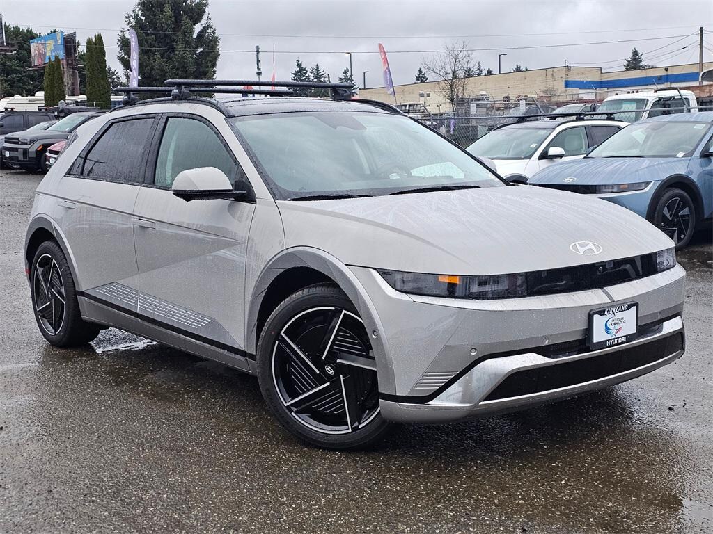 Electric Motor 1-Speed Automatic AWD 4D Sport Utility Cyber Gray 4-Wheel Disc Brakes, 8 Speakers, ABS brakes, Air Conditioning, All Season Fitted Liners, Alloy wheels, AM/FM radio: SiriusXM, Apple CarPlay & Android Auto, Auto High-beam Headlights, Auto-dimming Rear-View mirror, Automatic temperature control, Bodyside moldings, Brake assist, Bumpers: body-color, Cargo Blocks, Cargo Net, Carpeted Floor Mats, Cross Rails, Delay-off headlights, Driver door bin, Driver vanity mirror, Dual front impact airbags, Dual front side impact airbags, Electronic Stability Control, Emergency communication system: None, First Aid Kit, Four wheel independent suspension, Front anti-roll bar, Front Bucket Seats, Front Center Armrest w/Storage, Front dual zone A/C, Front reading lights, Fully automatic headlights, Garage door transmitter: HomeLink, H-Tex Artificial Leather Seating Surfaces, Heads-Up Display, Heated and Ventilated Front Bucket Seats, Heated door mirrors, Heated front seats, Heated rear seats, Heated steering wheel, Illuminated entry, Low tire pressure warning, Memory seat, Navigation System, Occupant sensing airbag, Option Group 01, Outside temperature display, Overhead airbag, Overhead console, Panic alarm, Passenger door bin, Passenger vanity mirror, Power door mirrors, Power driver seat, Power Liftgate, Power passenger seat, Power steering, Power windows, Radio: AM/FM/SiriusXM/HD Audio System, Rain sensing wipers, Rear anti-roll bar, Rear reading lights, Rear seat center armrest, Rear side impact airbag, Rear window defroster, Rear window wiper, Remote keyless entry, Security system, Speed control, Speed-sensing steering, Split folding rear seat, Spoiler, Steering wheel mounted audio controls, Telescoping steering wheel, Tilt steering wheel, Traction control, Trip computer, Turn signal indicator mirrors, Up Seatback Cargo Mat, Variably intermittent wipers, Ventilated front seats, Wheels: 20" x 8.5J Alloy. Prices good through 5-31-2025. Kirkland Price includes:$1500 - Hyundai HMF Dealer Choice : $1500 discount and 5.49% APR for 24 months. $44.09 per $1000 financed. Available to well qualified buyers who finance through Hyundai Motor Finance. H704.
