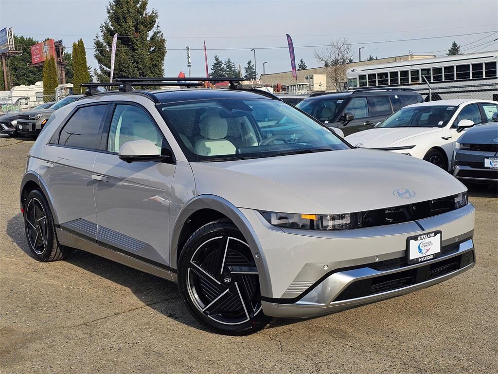 Electric Motor 1-Speed Automatic AWD 4D Sport Utility Cyber Gray 4-Wheel Disc Brakes, 8 Speakers, ABS brakes, Air Conditioning, Alloy wheels, AM/FM radio: SiriusXM, Apple CarPlay & Android Auto, Auto High-beam Headlights, Auto-dimming Rear-View mirror, Automatic temperature control, Bodyside moldings, Brake assist, Bumpers: body-color, Cargo Blocks, Cargo Net, Carpeted Floor Mats, Cross Rails, Delay-off headlights, Driver door bin, Driver vanity mirror, Dual front impact airbags, Dual front side impact airbags, Electronic Stability Control, Emergency communication system: None, Four wheel independent suspension, Front anti-roll bar, Front Bucket Seats, Front Center Armrest w/Storage, Front dual zone A/C, Front reading lights, Fully automatic headlights, Garage door transmitter: HomeLink, H-Tex Artificial Leather Seating Surfaces, Heads-Up Display, Heated and Ventilated Front Bucket Seats, Heated door mirrors, Heated front seats, Heated rear seats, Heated steering wheel, Illuminated entry, Low tire pressure warning, Memory seat, Navigation System, Occupant sensing airbag, Option Group 01, Outside temperature display, Overhead airbag, Overhead console, Panic alarm, Passenger door bin, Passenger vanity mirror, Power door mirrors, Power driver seat, Power Liftgate, Power passenger seat, Power steering, Power windows, Radio: AM/FM/SiriusXM/HD Audio System, Rain sensing wipers, Rear anti-roll bar, Rear reading lights, Rear seat center armrest, Rear side impact airbag, Rear window defroster, Rear window wiper, Remote keyless entry, Security system, Speed control, Speed-sensing steering, Split folding rear seat, Spoiler, Steering wheel mounted audio controls, Telescoping steering wheel, Tilt steering wheel, Traction control, Trip computer, Turn signal indicator mirrors, Variably intermittent wipers, Ventilated front seats, Wheels: 20" x 8.5J Alloy. Prices good through 5-31-2025. Kirkland Price includes:$10000 - Hyundai HMF Dealer Choice: $10000 discount and 5.39% APR for 24 months. $44.05 per $1000 financed. Available to well qualified buyers who finance through Hyundai Motor Finance. H704.