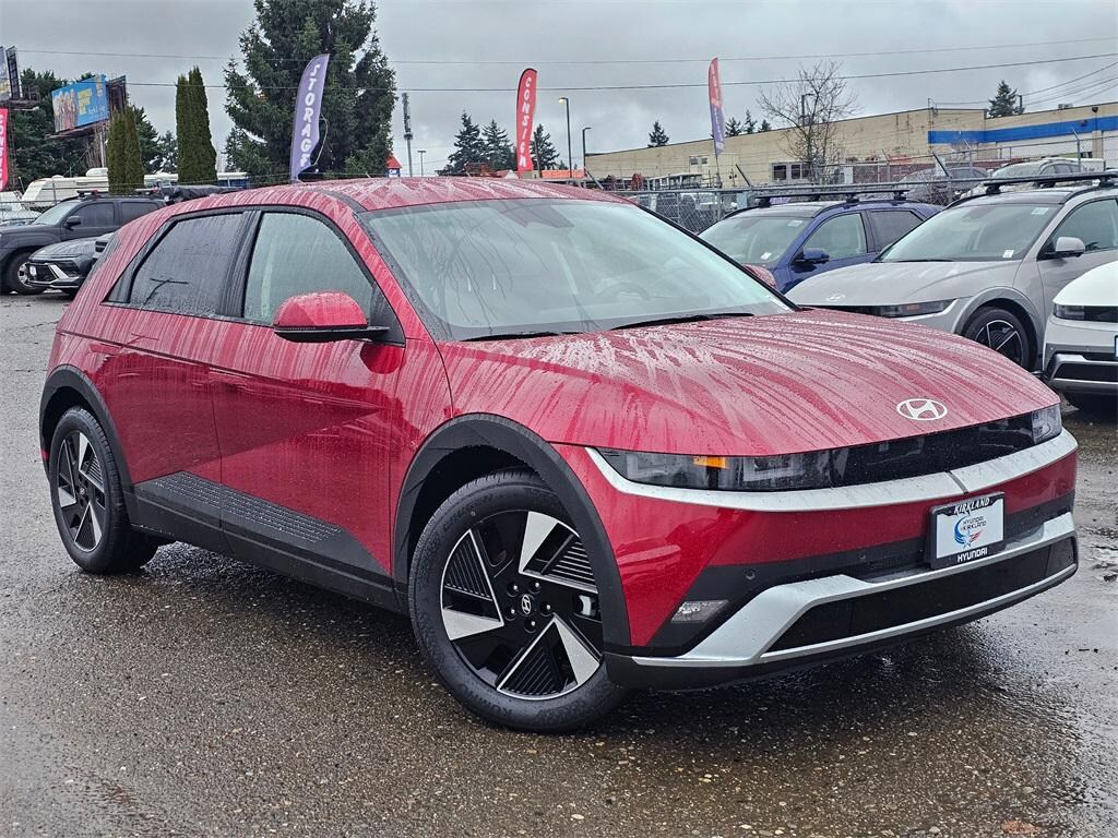 Electric Motor 1-Speed Automatic AWD 4D Sport Utility Ultimate Red 4-Wheel Disc Brakes, 6 Speakers, ABS brakes, Air Conditioning, All Season Fitted Liners, Alloy wheels, AM/FM radio: SiriusXM, Apple CarPlay & Android Auto, Auto High-beam Headlights, Auto-dimming Rear-View mirror, Automatic temperature control, Bodyside moldings, Brake assist, Bumpers: body-color, Carpeted Floor Mats, Delay-off headlights, Driver door bin, Driver vanity mirror, Dual front impact airbags, Dual front side impact airbags, Electronic Stability Control, Emergency communication system: None, First Aid Kit, Four wheel independent suspension, Front anti-roll bar, Front Bucket Seats, Front Center Armrest w/Storage, Front dual zone A/C, Front reading lights, Fully automatic headlights, Garage door transmitter: HomeLink, H-Tex Artificial Leather Seating Surfaces, harman/kardon® Speakers, Heated door mirrors, Heated Front Bucket Seats, Heated front seats, Illuminated entry, Low tire pressure warning, Navigation System, Occupant sensing airbag, Option Group 01, Outside temperature display, Overhead airbag, Overhead console, Panic alarm, Passenger door bin, Passenger vanity mirror, Power door mirrors, Power driver seat, Power Liftgate, Power passenger seat, Power steering, Power windows, Radio: AM/FM/SiriusXM/HD Audio System, Rear anti-roll bar, Rear reading lights, Rear seat center armrest, Rear side impact airbag, Rear window defroster, Rear window wiper, Remote keyless entry, Roadside Assistance Kit, Security system, Speed control, Speed-sensing steering, Split folding rear seat, Spoiler, Steering wheel mounted audio controls, Telescoping steering wheel, Tilt steering wheel, Traction control, Trip computer, Turn signal indicator mirrors, Variably intermittent wipers, Wheels: 19" x 7.5J Alloy. Prices good through 5-31-2025. Kirkland Price includes:$1500 - Hyundai HMF Dealer Choice : $1500 discount and 5.49% APR for 24 months. $44.09 per $1000 financed. Available to well qualified buyers who finance through Hyundai Motor Finance. H704.