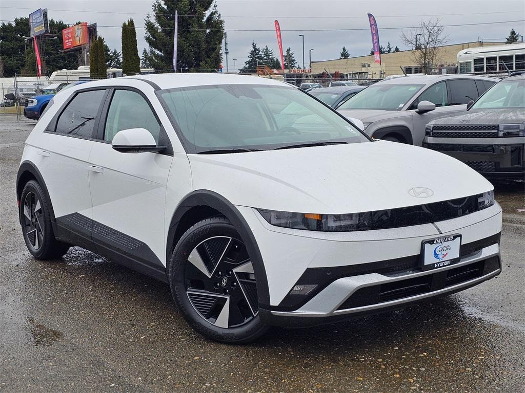 Electric Motor 1-Speed Automatic AWD 4D Sport Utility Atlas White 4-Wheel Disc Brakes, 6 Speakers, ABS brakes, Air Conditioning, Alloy wheels, AM/FM radio: SiriusXM, Apple CarPlay & Android Auto, Auto High-beam Headlights, Auto-dimming Rear-View mirror, Automatic temperature control, Bodyside moldings, Brake assist, Bumpers: body-color, Cargo Net, Carpeted Floor Mats, Delay-off headlights, Driver door bin, Driver vanity mirror, Dual front impact airbags, Dual front side impact airbags, Electronic Stability Control, Emergency communication system: None, First Aid Kit, Four wheel independent suspension, Front anti-roll bar, Front Bucket Seats, Front Center Armrest w/Storage, Front dual zone A/C, Front reading lights, Fully automatic headlights, Garage door transmitter: HomeLink, H-Tex Artificial Leather Seating Surfaces, harman/kardon® Speakers, Heated door mirrors, Heated Front Bucket Seats, Heated front seats, Illuminated entry, Low tire pressure warning, Mudguards, Navigation System, Occupant sensing airbag, Option Group 01, Outside temperature display, Overhead airbag, Overhead console, Panic alarm, Passenger door bin, Passenger vanity mirror, Power door mirrors, Power driver seat, Power Liftgate, Power passenger seat, Power steering, Power windows, Radio: AM/FM/SiriusXM/HD Audio System, Rear anti-roll bar, Rear reading lights, Rear seat center armrest, Rear side impact airbag, Rear window defroster, Rear window wiper, Remote keyless entry, Security system, Severe Weather Kit, Speed control, Speed-sensing steering, Split folding rear seat, Spoiler, Steering wheel mounted audio controls, Telescoping steering wheel, Tilt steering wheel, Traction control, Trip computer, Turn signal indicator mirrors, Up Seatback Cargo Mat, Variably intermittent wipers, Wheels: 19" x 7.5J Alloy. Prices good through 5-31-2025. Kirkland Price includes:$10000 - Hyundai HMF Dealer Choice: $10000 discount and 5.39% APR for 24 months. $44.05 per $1000 financed. Available to well qualified buyers who finance through Hyundai Motor Finance. H704.