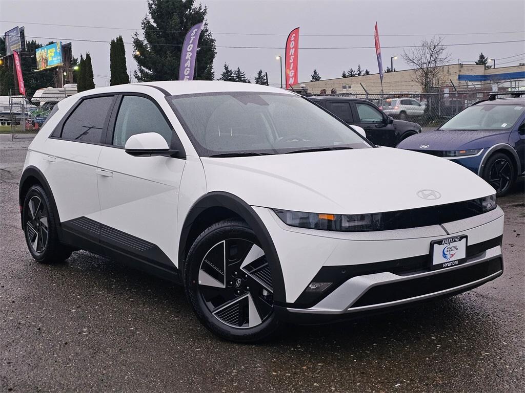 Electric Motor 1-Speed Automatic AWD 4D Sport Utility Atlas White 4-Wheel Disc Brakes, 6 Speakers, ABS brakes, Air Conditioning, Alloy wheels, AM/FM radio: SiriusXM, Apple CarPlay & Android Auto, Auto High-beam Headlights, Auto-dimming Rear-View mirror, Automatic temperature control, Bodyside moldings, Brake assist, Bumpers: body-color, Cargo Net, Carpeted Floor Mats, Delay-off headlights, Driver door bin, Driver vanity mirror, Dual front impact airbags, Dual front side impact airbags, Electronic Stability Control, Emergency communication system: None, First Aid Kit, Four wheel independent suspension, Front anti-roll bar, Front Bucket Seats, Front Center Armrest w/Storage, Front dual zone A/C, Front reading lights, Fully automatic headlights, Garage door transmitter: HomeLink, H-Tex Artificial Leather Seating Surfaces, harman/kardon® Speakers, Heated door mirrors, Heated Front Bucket Seats, Heated front seats, Illuminated entry, Low tire pressure warning, Mudguards, Navigation System, Occupant sensing airbag, Option Group 01, Outside temperature display, Overhead airbag, Overhead console, Panic alarm, Passenger door bin, Passenger vanity mirror, Power door mirrors, Power driver seat, Power Liftgate, Power passenger seat, Power steering, Power windows, Radio: AM/FM/SiriusXM/HD Audio System, Rear anti-roll bar, Rear reading lights, Rear seat center armrest, Rear side impact airbag, Rear window defroster, Rear window wiper, Remote keyless entry, Security system, Severe Weather Kit, Speed control, Speed-sensing steering, Split folding rear seat, Spoiler, Steering wheel mounted audio controls, Telescoping steering wheel, Tilt steering wheel, Traction control, Trip computer, Turn signal indicator mirrors, Up Seatback Cargo Mat, Variably intermittent wipers, Wheels: 19" x 7.5J Alloy. Prices good through 5-31-2025. Kirkland Price includes:$1500 - Hyundai HMF Dealer Choice : $1500 discount and 5.49% APR for 24 months. $44.09 per $1000 financed. Available to well qualified buyers who finance through Hyundai Motor Finance. H704.