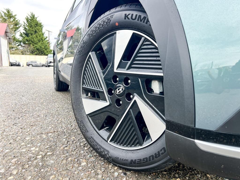 Electric Motor 1-Speed Automatic AWD 4D Sport Utility Digital Teal 4-Wheel Disc Brakes, 6 Speakers, ABS brakes, Air Conditioning, Alloy Door Scuff Plates, Alloy wheels, AM/FM radio: SiriusXM, Apple CarPlay & Android Auto, Auto High-beam Headlights, Auto-dimming Rear-View mirror, Automatic temperature control, Bodyside moldings, Brake assist, Bumpers: body-color, Cargo Net, Carpeted Floor Mats, Delay-off headlights, Driver door bin, Driver vanity mirror, Dual front impact airbags, Dual front side impact airbags, Electronic Stability Control, Emergency communication system: None, First Aid Kit, Four wheel independent suspension, Front anti-roll bar, Front Bucket Seats, Front Center Armrest w/Storage, Front dual zone A/C, Front reading lights, Fully automatic headlights, Garage door transmitter: HomeLink, H-Tex Artificial Leather Seating Surfaces, harman/kardon® Speakers, Heated door mirrors, Heated Front Bucket Seats, Heated front seats, Illuminated entry, Low tire pressure warning, Navigation System, Occupant sensing airbag, Option Group 01, Outside temperature display, Overhead airbag, Overhead console, Panic alarm, Passenger door bin, Passenger vanity mirror, Power door mirrors, Power driver seat, Power Liftgate, Power passenger seat, Power steering, Power windows, Radio: AM/FM/SiriusXM/HD Audio System, Rear anti-roll bar, Rear reading lights, Rear seat center armrest, Rear side impact airbag, Rear window defroster, Rear window wiper, Remote keyless entry, Security system, Speed control, Speed-sensing steering, Split folding rear seat, Spoiler, Steering wheel mounted audio controls, Telescoping steering wheel, Tilt steering wheel, Traction control, Trip computer, Turn signal indicator mirrors, Up Seatback Cargo Mat, Variably intermittent wipers, Wheels: 19" x 7.5J Alloy. Prices good through 5-31-2025. Kirkland Price includes:$10000 - Hyundai HMF Dealer Choice: $10000 discount and 5.39% APR for 24 months. $44.05 per $1000 financed. Available to well qualified buyers who finance through Hyundai Motor Finance. H704.