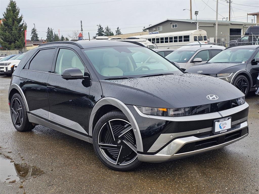 Electric Motor 1-Speed Automatic AWD 4D Sport Utility Abyss Black 4-Wheel Disc Brakes, 8 Speakers, ABS brakes, Air Conditioning, All Season Fitted Liners, Alloy wheels, AM/FM radio: SiriusXM, Apple CarPlay & Android Auto, Auto High-beam Headlights, Auto-dimming Rear-View mirror, Automatic temperature control, Bodyside moldings, Brake assist, Bumpers: body-color, Cargo Net, Carpeted Floor Mats, Delay-off headlights, Driver door bin, Driver vanity mirror, Dual front impact airbags, Dual front side impact airbags, Electronic Stability Control, Emergency communication system: None, First Aid Kit, Four wheel independent suspension, Front anti-roll bar, Front Bucket Seats, Front Center Armrest w/Storage, Front dual zone A/C, Front reading lights, Fully automatic headlights, Garage door transmitter: HomeLink, H-Tex Artificial Leather Seating Surfaces, Heads-Up Display, Heated and Ventilated Front Bucket Seats, Heated door mirrors, Heated front seats, Heated rear seats, Heated steering wheel, Illuminated entry, Low tire pressure warning, Memory seat, Navigation System, Occupant sensing airbag, Option Group 01, Outside temperature display, Overhead airbag, Overhead console, Panic alarm, Passenger door bin, Passenger vanity mirror, Power door mirrors, Power driver seat, Power Liftgate, Power passenger seat, Power steering, Power windows, Radio: AM/FM/SiriusXM/HD Audio System, Rain sensing wipers, Rear anti-roll bar, Rear reading lights, Rear seat center armrest, Rear side impact airbag, Rear window defroster, Rear window wiper, Remote keyless entry, Security system, Severe Weather Kit, Speed control, Speed-sensing steering, Split folding rear seat, Spoiler, Steering wheel mounted audio controls, Telescoping steering wheel, Tilt steering wheel, Traction control, Trip computer, Turn signal indicator mirrors, Up Seatback Cargo Mat, Variably intermittent wipers, Ventilated front seats, Wheels: 20" x 8.5J Alloy. Prices good through 5-31-2025. Kirkland Price includes:$1500 - Hyundai HMF Dealer Choice : $1500 discount and 5.49% APR for 24 months. $44.09 per $1000 financed. Available to well qualified buyers who finance through Hyundai Motor Finance. H704.