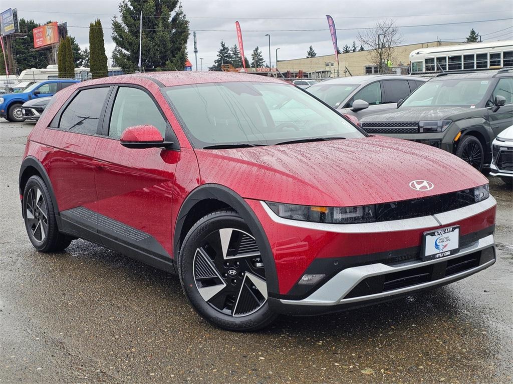 Electric Motor 1-Speed Automatic AWD 4D Sport Utility Ultimate Red 4-Wheel Disc Brakes, 6 Speakers, ABS brakes, Air Conditioning, Alloy wheels, AM/FM radio: SiriusXM, Apple CarPlay & Android Auto, Auto High-beam Headlights, Auto-dimming Rear-View mirror, Automatic temperature control, Bodyside moldings, Brake assist, Bumpers: body-color, Cargo Net, Carpeted Floor Mats, Delay-off headlights, Driver door bin, Driver vanity mirror, Dual front impact airbags, Dual front side impact airbags, Electronic Stability Control, Emergency communication system: None, First Aid Kit, Four wheel independent suspension, Front anti-roll bar, Front Bucket Seats, Front Center Armrest w/Storage, Front dual zone A/C, Front reading lights, Fully automatic headlights, Garage door transmitter: HomeLink, H-Tex Artificial Leather Seating Surfaces, harman/kardon® Speakers, Heated door mirrors, Heated Front Bucket Seats, Heated front seats, Illuminated entry, Low tire pressure warning, Mudguards, Navigation System, Occupant sensing airbag, Option Group 01, Outside temperature display, Overhead airbag, Overhead console, Panic alarm, Passenger door bin, Passenger vanity mirror, Power door mirrors, Power driver seat, Power Liftgate, Power passenger seat, Power steering, Power windows, Radio: AM/FM/SiriusXM/HD Audio System, Rear anti-roll bar, Rear reading lights, Rear seat center armrest, Rear side impact airbag, Rear window defroster, Rear window wiper, Remote keyless entry, Security system, Severe Weather Kit, Speed control, Speed-sensing steering, Split folding rear seat, Spoiler, Steering wheel mounted audio controls, Telescoping steering wheel, Tilt steering wheel, Traction control, Trip computer, Turn signal indicator mirrors, Up Seatback Cargo Mat, Variably intermittent wipers, Wheels: 19" x 7.5J Alloy. Prices good through 5-31-2025. Kirkland Price includes:$10000 - Hyundai HMF Dealer Choice: $10000 discount and 5.39% APR for 24 months. $44.05 per $1000 financed. Available to well qualified buyers who finance through Hyundai Motor Finance. H704.