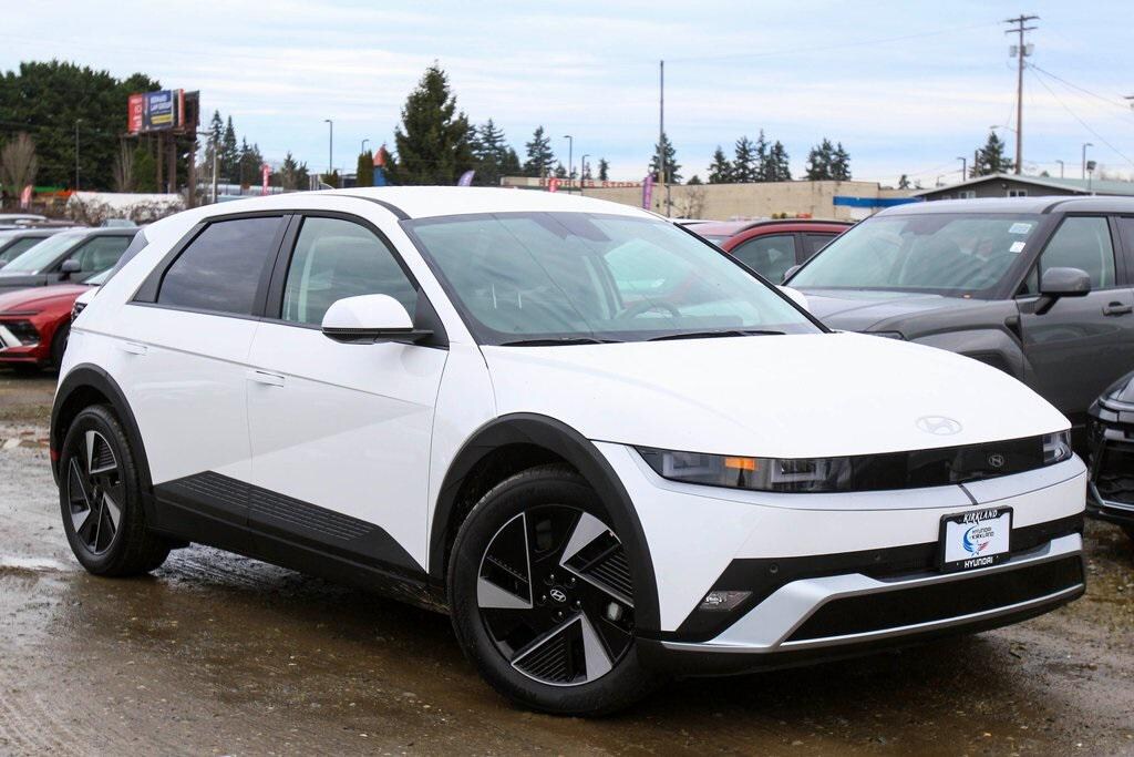 Electric Motor 1-Speed Automatic AWD 4D Sport Utility Atlas White 4-Wheel Disc Brakes, 6 Speakers, ABS brakes, Air Conditioning, All Season Fitted Liners, Alloy wheels, AM/FM radio: SiriusXM, Apple CarPlay & Android Auto, Auto High-beam Headlights, Auto-dimming Rear-View mirror, Automatic temperature control, Bodyside moldings, Brake assist, Bumpers: body-color, Carpeted Floor Mats, Delay-off headlights, Driver door bin, Driver vanity mirror, Dual front impact airbags, Dual front side impact airbags, Electronic Stability Control, Emergency communication system: None, First Aid Kit, Four wheel independent suspension, Front anti-roll bar, Front Bucket Seats, Front Center Armrest w/Storage, Front dual zone A/C, Front reading lights, Fully automatic headlights, Garage door transmitter: HomeLink, H-Tex Artificial Leather Seating Surfaces, harman/kardon® Speakers, Heated door mirrors, Heated Front Bucket Seats, Heated front seats, Illuminated entry, Low tire pressure warning, Navigation System, Occupant sensing airbag, Option Group 01, Outside temperature display, Overhead airbag, Overhead console, Panic alarm, Passenger door bin, Passenger vanity mirror, Power door mirrors, Power driver seat, Power Liftgate, Power passenger seat, Power steering, Power windows, Radio: AM/FM/SiriusXM/HD Audio System, Rear anti-roll bar, Rear reading lights, Rear seat center armrest, Rear side impact airbag, Rear window defroster, Rear window wiper, Remote keyless entry, Security system, Speed control, Speed-sensing steering, Split folding rear seat, Spoiler, Steering wheel mounted audio controls, Telescoping steering wheel, Tilt steering wheel, Traction control, Trip computer, Turn signal indicator mirrors, Up Seatback Cargo Mat, Variably intermittent wipers, Wheels: 19" x 7.5J Alloy. Prices good through 5-31-2025. Kirkland Price includes:$10000 - Hyundai HMF Dealer Choice: $10000 discount and 5.39% APR for 24 months. $44.05 per $1000 financed. Available to well qualified buyers who finance through Hyundai Motor Finance. H704.
