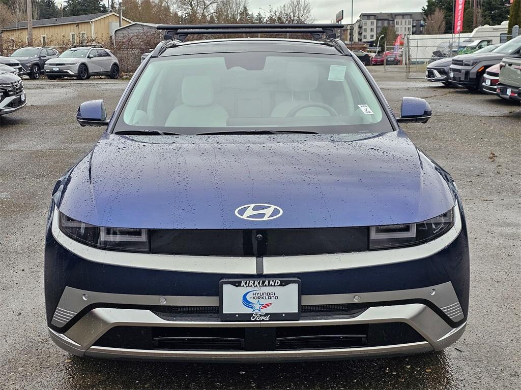 Electric Motor 1-Speed Automatic AWD 4D Sport Utility Cosmic Blue 4-Wheel Disc Brakes, 8 Speakers, ABS brakes, Air Conditioning, Alloy wheels, AM/FM radio: SiriusXM, Apple CarPlay & Android Auto, Auto High-beam Headlights, Auto-dimming Rear-View mirror, Automatic temperature control, Bodyside moldings, Brake assist, Bumpers: body-color, Cargo Net, Carpeted Floor Mats, Cross Rails, Delay-off headlights, Driver door bin, Driver vanity mirror, Dual front impact airbags, Dual front side impact airbags, Electronic Stability Control, Emergency communication system: None, First Aid Kit, Four wheel independent suspension, Front anti-roll bar, Front Bucket Seats, Front Center Armrest w/Storage, Front dual zone A/C, Front reading lights, Fully automatic headlights, Garage door transmitter: HomeLink, H-Tex Artificial Leather Seating Surfaces, Heads-Up Display, Heated and Ventilated Front Bucket Seats, Heated door mirrors, Heated front seats, Heated rear seats, Heated steering wheel, Illuminated entry, Low tire pressure warning, Memory seat, Navigation System, Occupant sensing airbag, Option Group 01, Outside temperature display, Overhead airbag, Overhead console, Panic alarm, Passenger door bin, Passenger vanity mirror, Power door mirrors, Power driver seat, Power Liftgate, Power passenger seat, Power steering, Power windows, Radio: AM/FM/SiriusXM/HD Audio System, Rain sensing wipers, Rear anti-roll bar, Rear reading lights, Rear seat center armrest, Rear side impact airbag, Rear window defroster, Rear window wiper, Remote keyless entry, Roadside Assistance Kit, Security system, Speed control, Speed-sensing steering, Split folding rear seat, Spoiler, Steering wheel mounted audio controls, Telescoping steering wheel, Tilt steering wheel, Traction control, Trip computer, Turn signal indicator mirrors, Variably intermittent wipers, Ventilated front seats, Wheels: 20" x 8.5J Alloy. Prices good through 5-31-2025. Kirkland Price includes:$10000 - Hyundai HMF Dealer Choice: $10000 discount and 5.39% APR for 24 months. $44.05 per $1000 financed. Available to well qualified buyers who finance through Hyundai Motor Finance. H704.