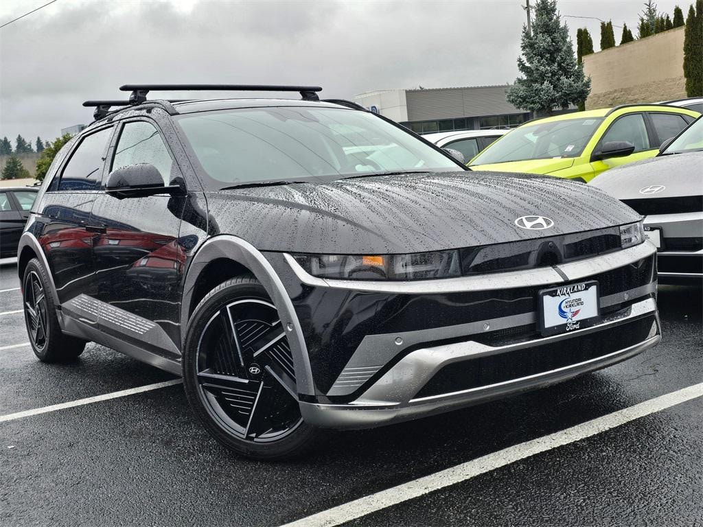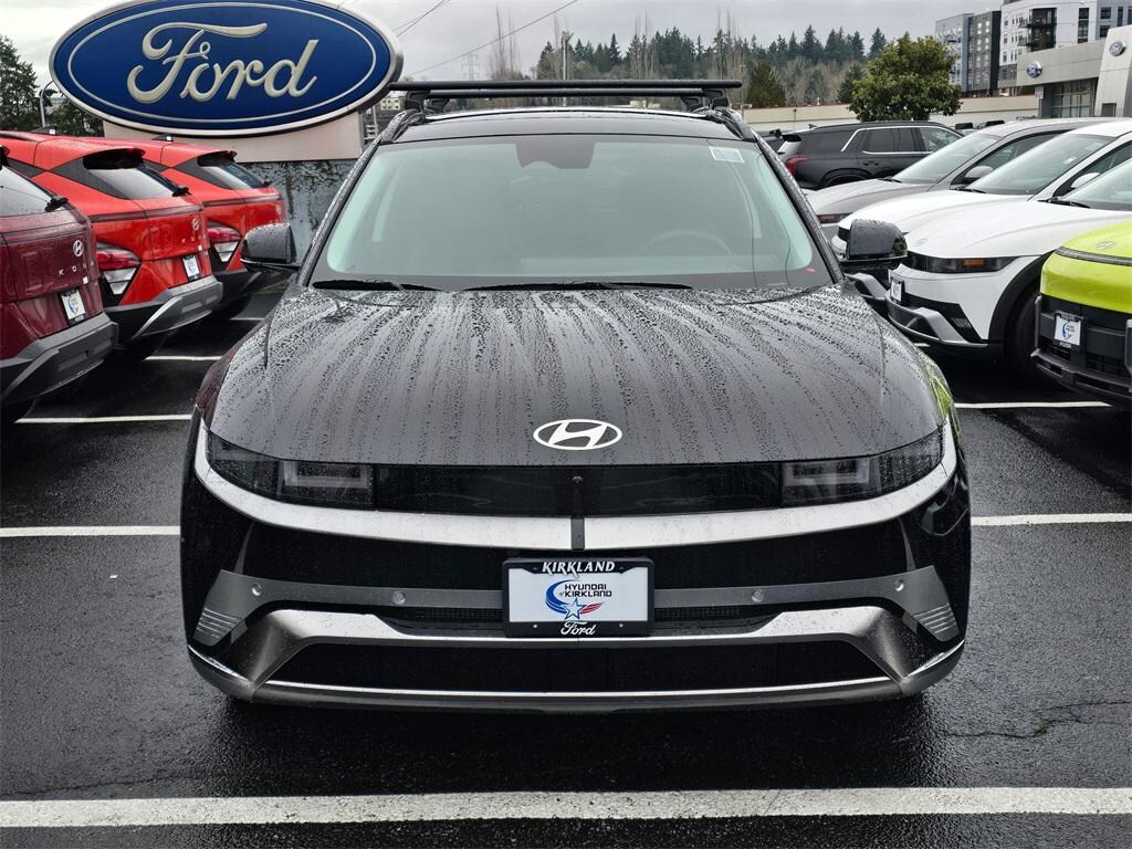 Electric Motor 1-Speed Automatic AWD 4D Sport Utility Abyss Black 4-Wheel Disc Brakes, 8 Speakers, ABS brakes, Air Conditioning, Alloy wheels, AM/FM radio: SiriusXM, Apple CarPlay & Android Auto, Auto High-beam Headlights, Auto-dimming Rear-View mirror, Automatic temperature control, Bodyside moldings, Brake assist, Bumpers: body-color, Cargo Net, Carpeted Floor Mats, Cross Rails, Delay-off headlights, Driver door bin, Driver vanity mirror, Dual front impact airbags, Dual front side impact airbags, Electronic Stability Control, Emergency communication system: None, First Aid Kit, Four wheel independent suspension, Front anti-roll bar, Front Bucket Seats, Front Center Armrest w/Storage, Front dual zone A/C, Front reading lights, Fully automatic headlights, Garage door transmitter: HomeLink, H-Tex Artificial Leather Seating Surfaces, Heads-Up Display, Heated and Ventilated Front Bucket Seats, Heated door mirrors, Heated front seats, Heated rear seats, Heated steering wheel, Illuminated entry, Low tire pressure warning, Memory seat, Navigation System, Occupant sensing airbag, Option Group 01, Outside temperature display, Overhead airbag, Overhead console, Panic alarm, Passenger door bin, Passenger vanity mirror, Power door mirrors, Power driver seat, Power Liftgate, Power passenger seat, Power steering, Power windows, Radio: AM/FM/SiriusXM/HD Audio System, Rain sensing wipers, Rear anti-roll bar, Rear reading lights, Rear seat center armrest, Rear side impact airbag, Rear window defroster, Rear window wiper, Remote keyless entry, Security system, Speed control, Speed-sensing steering, Split folding rear seat, Spoiler, Steering wheel mounted audio controls, Telescoping steering wheel, Tilt steering wheel, Traction control, Trip computer, Turn signal indicator mirrors, Variably intermittent wipers, Ventilated front seats, Wheels: 20" x 8.5J Alloy. Prices good through 5-31-2025. Kirkland Price includes:$3000 - Hyundai HMF Dealer Choice : $3000 discount and 5.39% APR for 24 months. $44.05 per $1000 financed. Available to well qualified buyers who finance through Hyundai Motor Finance. H704.