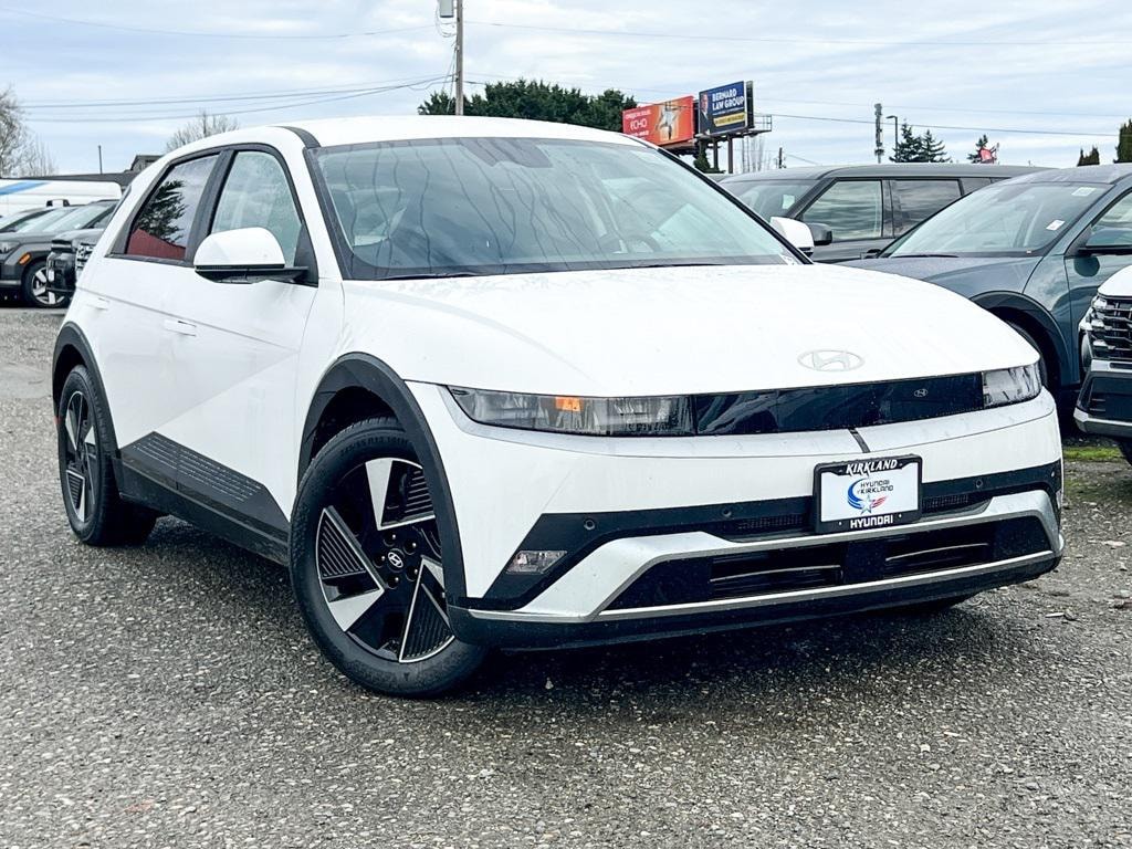 Electric Motor 1-Speed Automatic AWD 4D Sport Utility Atlas White 4-Wheel Disc Brakes, 6 Speakers, ABS brakes, Air Conditioning, All Season Fitted Liners, Alloy wheels, AM/FM radio: SiriusXM, Apple CarPlay & Android Auto, Auto High-beam Headlights, Automatic temperature control, Bodyside moldings, Brake assist, Bumpers: body-color, Cargo Net, Carpeted Floor Mats, Delay-off headlights, Driver door bin, Driver vanity mirror, Dual front impact airbags, Dual front side impact airbags, Electronic Stability Control, Emergency communication system: None, First Aid Kit, Four wheel independent suspension, Front anti-roll bar, Front Bucket Seats, Front Center Armrest w/Storage, Front dual zone A/C, Front reading lights, Fully automatic headlights, harman/kardon® Speakers, Heated door mirrors, Heated Front Bucket Seats, Heated front seats, Illuminated entry, Low tire pressure warning, Navigation System, Occupant sensing airbag, Option Group 01, Outside temperature display, Overhead airbag, Overhead console, Panic alarm, Passenger door bin, Passenger vanity mirror, Power door mirrors, Power driver seat, Power steering, Power windows, Radio: AM/FM/SiriusXM/HD Audio System, Rear anti-roll bar, Rear reading lights, Rear seat center armrest, Rear side impact airbag, Rear window defroster, Rear window wiper, Remote keyless entry, Security system, Severe Weather Kit, Speed control, Speed-sensing steering, Split folding rear seat, Spoiler, Stain-Resistant Cloth Seating Surfaces, Steering wheel mounted audio controls, Telescoping steering wheel, Tilt steering wheel, Traction control, Trip computer, Turn signal indicator mirrors, Variably intermittent wipers, Wheels: 19" x 7.5J Alloy. Prices good through 5-31-2025. Kirkland Price includes:$10000 - Hyundai HMF Dealer Choice: $10000 discount and 5.39% APR for 24 months. $44.05 per $1000 financed. Available to well qualified buyers who finance through Hyundai Motor Finance. H704.