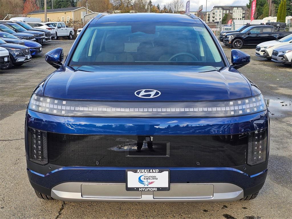 Electric Motor 1-Speed Automatic AWD 4D Sport Utility Cosmic Blue 3rd row seats: split-bench, 4-Wheel Disc Brakes, 8 Speakers, ABS brakes, Air Conditioning, Alloy wheels, AM/FM radio: SiriusXM, Apple CarPlay & Android Auto, Auto High-beam Headlights, Auto-leveling suspension, Automatic temperature control, Bodyside moldings, Brake assist, Bumpers: body-color, Cargo Cover, Cargo Net, Cargo Tray, Carpeted Floor Mats, Charging Port Applique, Delay-off headlights, Driver door bin, Driver vanity mirror, Dual front impact airbags, Dual front side impact airbags, Electronic Stability Control, Emergency communication system: None, First Aid Kit, Four wheel independent suspension, Front anti-roll bar, Front Bucket Seats, Front Center Armrest, Front dual zone A/C, Front reading lights, Fully automatic headlights, harman/kardon® Speakers, Heated door mirrors, Heated Front Bucket Seats, Heated front seats, Illuminated entry, Leather steering wheel, Low tire pressure warning, Mudguards, Navigation System, Occupant sensing airbag, Option Group 01, Outside temperature display, Overhead airbag, Overhead console, Panic alarm, Passenger door bin, Passenger vanity mirror, Power door mirrors, Power driver seat, Power Liftgate, Power passenger seat, Power steering, Power windows, Radio: AM/FM/SiriusXM/HD Audio System, Rain sensing wipers, Rear air conditioning, Rear anti-roll bar, Rear reading lights, Rear seat center armrest, Rear side impact airbag, Rear window defroster, Rear window wiper, Reclining 3rd row seat, Remote keyless entry, Security system, Severe Weather Kit, Speed control, Split folding rear seat, Spoiler, Stain-Resistant Cloth Seating Surfaces, Steering wheel mounted audio controls, Telescoping steering wheel, Tilt steering wheel, Traction control, Trip computer, Turn signal indicator mirrors, Variably intermittent wipers, Wheels: 19" x 8J Alloy. Prices good through 5-31-2025. Kirkland Price includes:$5000 - Hyundai HMF Dealer Choice : $5000 discount and 5.49% APR for 24 months. $44.09 per $1000 financed. Available to well qualified buyers who finance through Hyundai Motor Finance. H704.