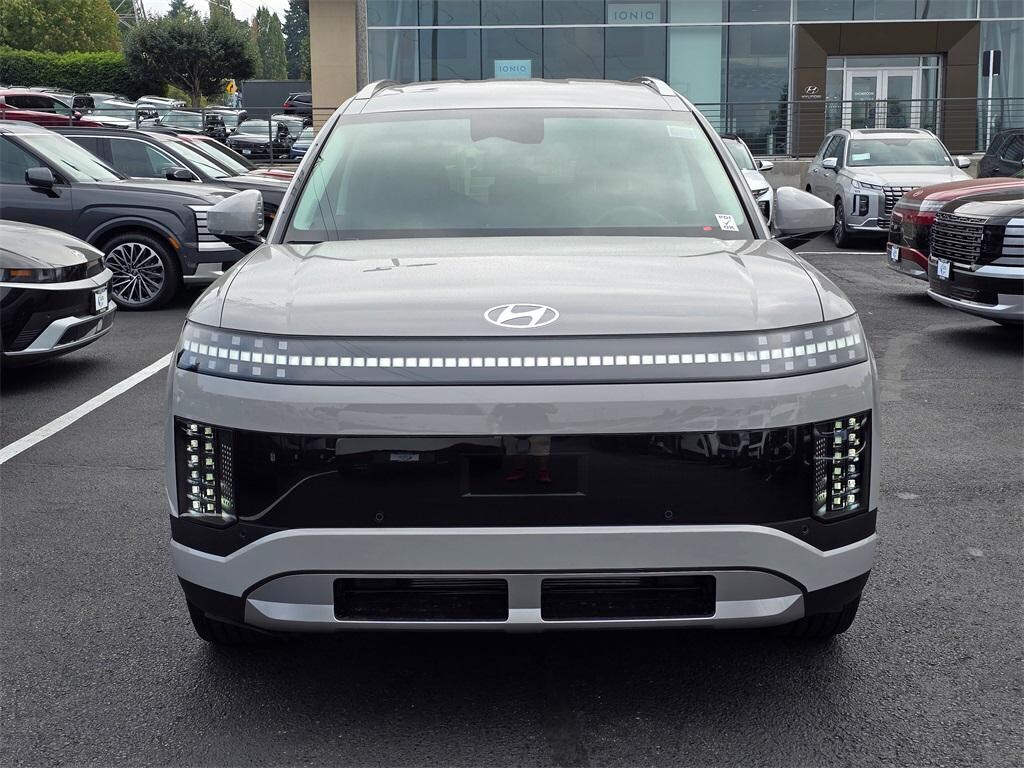 Electric Motor 1-Speed Automatic AWD 4D Sport Utility Cyber Gray 3rd row seats: split-bench, 4-Wheel Disc Brakes, 8 Speakers, ABS brakes, Air Conditioning, Alloy wheels, AM/FM radio: SiriusXM, Apple CarPlay & Android Auto, Auto High-beam Headlights, Auto-leveling suspension, Automatic temperature control, Bodyside moldings, Brake assist, Bumpers: body-color, Cargo Net, Cargo Tray, Carpeted Floor Mats, Delay-off headlights, Driver door bin, Driver vanity mirror, Dual front impact airbags, Dual front side impact airbags, Electronic Stability Control, Emergency communication system: Bluelink+, First Aid Kit, Four wheel independent suspension, Front anti-roll bar, Front Bucket Seats, Front Center Armrest, Front dual zone A/C, Front reading lights, Fully automatic headlights, harman/kardon® Speakers, Heated door mirrors, Heated Front Bucket Seats, Heated front seats, Illuminated entry, Leather steering wheel, Low tire pressure warning, Mudguards, Navigation System, Occupant sensing airbag, Option Group 01, Outside temperature display, Overhead airbag, Overhead console, Panic alarm, Passenger door bin, Passenger vanity mirror, Power door mirrors, Power driver seat, Power Liftgate, Power passenger seat, Power steering, Power windows, Radio: AM/FM/SiriusXM/HD Audio System, Rain sensing wipers, Rear air conditioning, Rear anti-roll bar, Rear reading lights, Rear seat center armrest, Rear side impact airbag, Rear window defroster, Rear window wiper, Reclining 3rd row seat, Remote keyless entry, Roadside Assistance Kit, Security system, Speed control, Split folding rear seat, Spoiler, Stain-Resistant Cloth Seating Surfaces, Steering wheel mounted audio controls, Telescoping steering wheel, Tilt steering wheel, Traction control, Trip computer, Turn signal indicator mirrors, Variably intermittent wipers, Wheels: 19" x 8J Alloy. Prices good through 5-31-2025. Kirkland Price includes:$5000 - Hyundai HMF Dealer Choice: $5000 discount and 5.99% APR for 24 months. $44.32 per $1000 financed. Available to well qualified buyers who finance through Hyundai Motor Finance. H704.