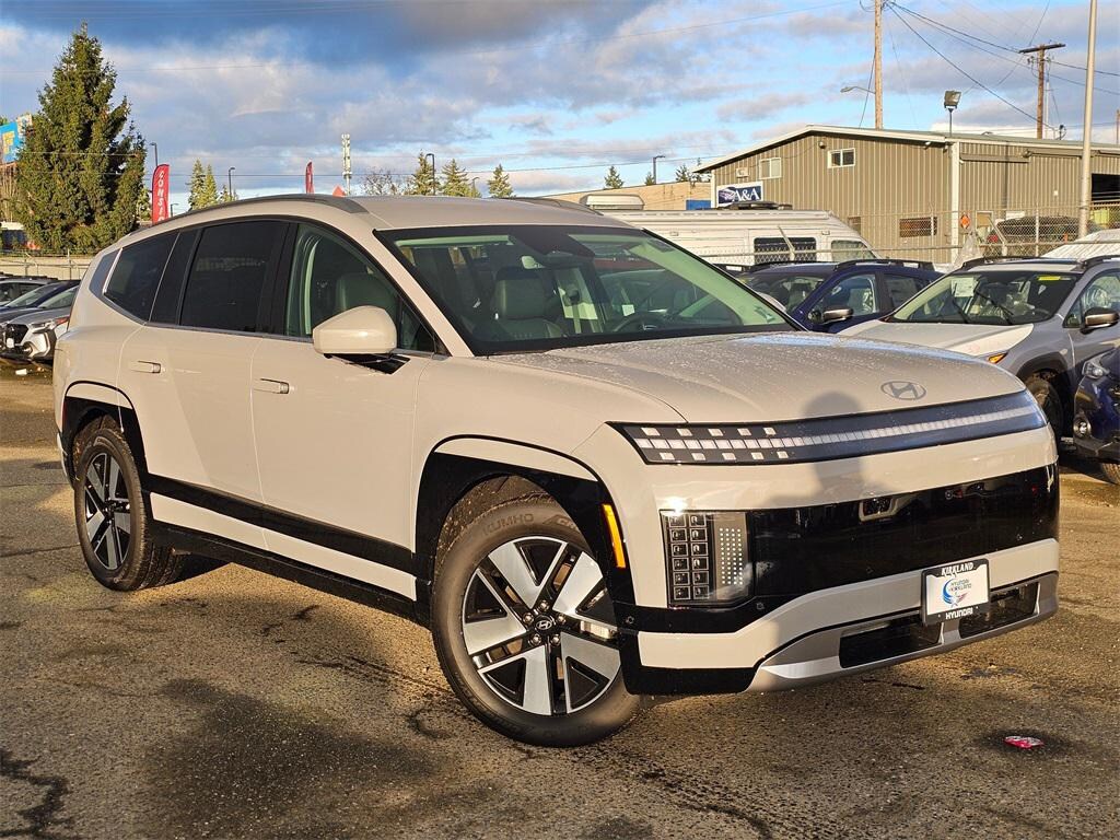 Electric Motor 1-Speed Automatic AWD 4D Sport Utility Cyber Gray 20" x 8J Alloy Wheels, 3rd row seats: split-bench, 4-Wheel Disc Brakes, 8 Speakers, ABS brakes, Air Conditioning, Alloy wheels, AM/FM radio: SiriusXM, Apple CarPlay & Android Auto, Auto High-beam Headlights, Auto-dimming Rear-View mirror, Auto-leveling suspension, Automatic temperature control, Bodyside moldings, Brake assist, Bumpers: body-color, Cargo Net, Cargo Organizer, Cargo Tray, Carpeted Floor Mats, Delay-off headlights, Driver door bin, Driver vanity mirror, Dual front impact airbags, Dual front side impact airbags, Electronic Stability Control, Emergency communication system: None, First Aid Kit, Four wheel independent suspension, Front anti-roll bar, Front Bucket Seats, Front Center Armrest, Front dual zone A/C, Front reading lights, Fully automatic headlights, Garage door transmitter: HomeLink, H-Tex Leatherette Seating Surfaces, harman/kardon® Speakers, Heated and Ventilated Front Bucket Seats, Heated door mirrors, Heated front seats, Heated rear seats, Heated steering wheel, Illuminated entry, Leather steering wheel, Low tire pressure warning, Navigation System, Occupant sensing airbag, Option Group 01, Outside temperature display, Overhead airbag, Overhead console, Panic alarm, Passenger door bin, Passenger vanity mirror, Power door mirrors, Power driver seat, Power Liftgate, Power passenger seat, Power steering, Power windows, Radio: AM/FM/SiriusXM/HD Audio System, Rain sensing wipers, Rear air conditioning, Rear anti-roll bar, Rear reading lights, Rear seat center armrest, Rear side impact airbag, Rear window defroster, Rear window wiper, Reclining 3rd row seat, Remote keyless entry, Security system, Speed control, Split folding rear seat, Spoiler, Steering wheel mounted audio controls, Telescoping steering wheel, Tilt steering wheel, Traction control, Trip computer, Turn signal indicator mirrors, Variably intermittent wipers, Ventilated front seats. Prices good through 5-31-2025. Kirkland Price includes:$5000 - Hyundai HMF Dealer Choice : $5000 discount and 5.49% APR for 24 months. $44.09 per $1000 financed. Available to well qualified buyers who finance through Hyundai Motor Finance. H704.