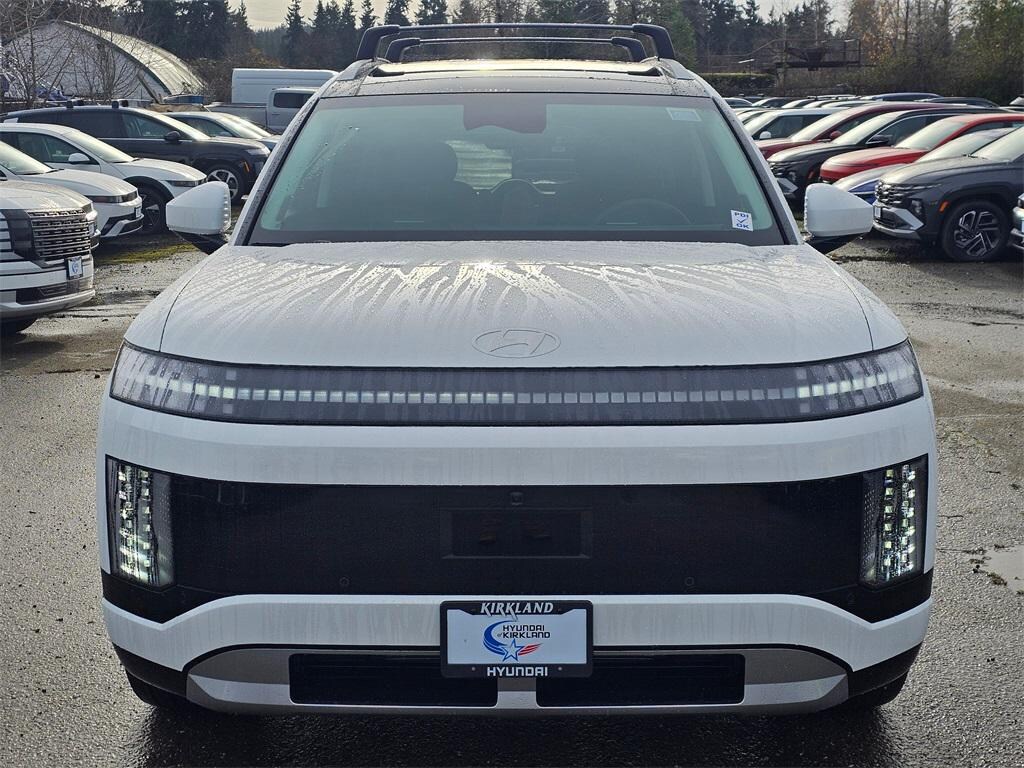 Electric Motor 1-Speed Automatic AWD 4D Sport Utility Snow White Pearl 14 Speakers, 3rd row seats: split-bench, 4-Wheel Disc Brakes, ABS brakes, Air Conditioning, Alloy wheels, AM/FM radio: SiriusXM, Apple CarPlay & Android Auto, Auto High-beam Headlights, Auto-dimming Rear-View mirror, Auto-leveling suspension, Automatic temperature control, Bodyside moldings, Brake assist, Bumpers: body-color, Cargo Blocks, Cargo Cover, Cargo Net, Cargo Organizer, Cargo Tray, Carpeted Floor Mats, Charging Port Applique, Crossbars, Delay-off headlights, Driver door bin, Driver vanity mirror, Dual front impact airbags, Dual front side impact airbags, Electronic Stability Control, Emergency communication system: None, First Aid Kit, Four wheel independent suspension, Front anti-roll bar, Front Bucket Seats, Front Center Armrest, Front dual zone A/C, Front reading lights, Fully automatic headlights, Garage door transmitter: HomeLink, H-Tex Leatherette Seating Surfaces (Two-Tone), Heated and Ventilated Front Bucket Seats, Heated door mirrors, Heated front seats, Heated rear seats, Heated steering wheel, Illuminated entry, Leather steering wheel, Low tire pressure warning, Memory seat, Navigation System, Occupant sensing airbag, Option Group 01, Outside temperature display, Overhead airbag, Overhead console, Panic alarm, Passenger door bin, Passenger vanity mirror, Power door mirrors, Power driver seat, Power Liftgate, Power moonroof: Panoramic, Power passenger seat, Power steering, Power windows, Radio: AM/FM/SiriusXM/HD Audio System, Rain sensing wipers, Rear air conditioning, Rear anti-roll bar, Rear reading lights, Rear side impact airbag, Rear window defroster, Rear window wiper, Reclining 3rd row seat, Remote keyless entry, Security system, Speed control, Split folding rear seat, Spoiler, Steering wheel memory, Steering wheel mounted audio controls, Telescoping steering wheel, Tilt steering wheel, Traction control, Trip computer, Turn signal indicator mirrors, Variably intermittent wipers, Ventilated front seats, Ventilated rear seats, Wheels: 21" x 9J 5-Spoke Alloy. Prices good through 5-31-2025. Kirkland Price includes:$5000 - Hyundai HMF Dealer Choice : $5000 discount and 5.49% APR for 24 months. $44.09 per $1000 financed. Available to well qualified buyers who finance through Hyundai Motor Finance. H704.