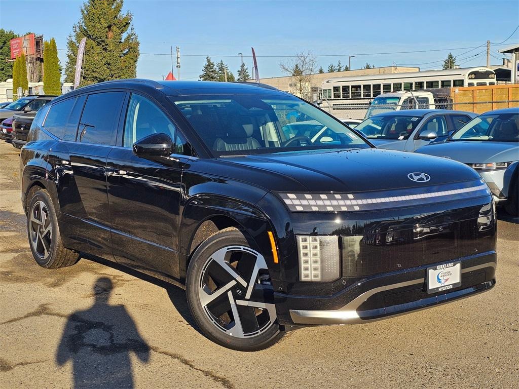 Electric Motor 1-Speed Automatic AWD 4D Sport Utility Abyss Black 14 Speakers, 3rd row seats: split-bench, 4-Wheel Disc Brakes, ABS brakes, Air Conditioning, All-Season Fitted Liners, Alloy wheels, AM/FM radio: SiriusXM, Apple CarPlay & Android Auto, Auto High-beam Headlights, Auto-dimming Rear-View mirror, Auto-leveling suspension, Automatic temperature control, Bodyside moldings, Brake assist, Bumpers: body-color, Cargo Cover, Cargo Organizer, Cargo Tray, Carpeted Floor Mats, Delay-off headlights, Driver door bin, Driver vanity mirror, Dual front impact airbags, Dual front side impact airbags, Electronic Stability Control, Emergency communication system: None, First Aid Kit, Four wheel independent suspension, Front anti-roll bar, Front Bucket Seats, Front Center Armrest, Front dual zone A/C, Front reading lights, Fully automatic headlights, Garage door transmitter: HomeLink, Heads-Up Display, Heated and Ventilated Front Bucket Seats, Heated door mirrors, Heated front seats, Heated rear seats, Heated steering wheel, Illuminated entry, Leather steering wheel, Low tire pressure warning, Memory seat, Navigation System, Occupant sensing airbag, Option Group 01, Outside temperature display, Overhead airbag, Overhead console, Panic alarm, Passenger door bin, Passenger vanity mirror, Power door mirrors, Power driver seat, Power Liftgate, Power moonroof: Panoramic, Power passenger seat, Power steering, Power windows, Premium Grade H-Tex Leatherette Seating Surfaces, Radio: AM/FM/SiriusXM/HD Audio System, Rain sensing wipers, Rear air conditioning, Rear anti-roll bar, Rear reading lights, Rear side impact airbag, Rear window defroster, Rear window wiper, Reclining 3rd row seat, Remote keyless entry, Security system, Speed control, Split folding rear seat, Spoiler, Steering wheel memory, Steering wheel mounted audio controls, Telescoping steering wheel, Tilt steering wheel, Traction control, Trip computer, Turn signal indicator mirrors, Variably intermittent wipers, Ventilated front seats, Ventilated rear seats, Wheels: 21" x 9J 5-Spoke Alloy. Prices good through 5-31-2025. Kirkland Price includes:$5000 - Hyundai HMF Dealer Choice : $5000 discount and 5.49% APR for 24 months. $44.09 per $1000 financed. Available to well qualified buyers who finance through Hyundai Motor Finance. H704.