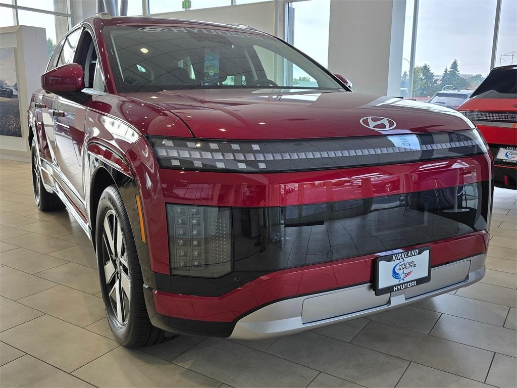 Electric Motor 1-Speed Automatic AWD 4D Sport Utility Ultimate Red 20" x 8J Alloy Wheels, 3rd row seats: split-bench, 4-Wheel Disc Brakes, 8 Speakers, ABS brakes, Air Conditioning, All-Season Fitted Liners, Alloy wheels, AM/FM radio: SiriusXM, Apple CarPlay & Android Auto, Auto High-beam Headlights, Auto-dimming Rear-View mirror, Auto-leveling suspension, Automatic temperature control, Bodyside moldings, Brake assist, Bumpers: body-color, Cargo Cover, Cargo Net, Cargo Tray, Carpeted Floor Mats, Delay-off headlights, Driver door bin, Driver vanity mirror, Dual front impact airbags, Dual front side impact airbags, Electronic Stability Control, Emergency communication system: Bluelink+, First Aid Kit, Four wheel independent suspension, Front anti-roll bar, Front Bucket Seats, Front Center Armrest, Front dual zone A/C, Front reading lights, Fully automatic headlights, Garage door transmitter: HomeLink, H-Tex Leatherette Seating Surfaces, harman/kardon® Speakers, Heated & Ventilated Front Bucket Seats, Heated door mirrors, Heated front seats, Heated rear seats, Heated steering wheel, Illuminated entry, Leather steering wheel, Low tire pressure warning, Navigation System, Occupant sensing airbag, Option Group 01, Outside temperature display, Overhead airbag, Overhead console, Panic alarm, Passenger door bin, Passenger vanity mirror, Power door mirrors, Power driver seat, Power Liftgate, Power passenger seat, Power steering, Power windows, Radio: AM/FM/SiriusXM/HD Audio System, Rain sensing wipers, Rear air conditioning, Rear anti-roll bar, Rear reading lights, Rear seat center armrest, Rear side impact airbag, Rear window defroster, Rear window wiper, Reclining 3rd row seat, Remote keyless entry, Security system, Speed control, Split folding rear seat, Spoiler, Steering wheel mounted audio controls, Telescoping steering wheel, Tilt steering wheel, Traction control, Trip computer, Turn signal indicator mirrors, Variably intermittent wipers, Ventilated front seats. Prices good through 5-31-2025. Kirkland Price includes:$5000 - Hyundai HMF Dealer Choice: $5000 discount and 5.99% APR for 24 months. $44.32 per $1000 financed. Available to well qualified buyers who finance through Hyundai Motor Finance. H704.