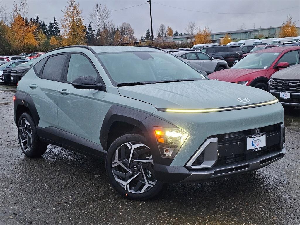 I4 8-Speed Automatic AWD 4D Sport Utility Mirage Green 4-Wheel Disc Brakes, 6 Speakers, ABS brakes, Air Conditioning, Alloy wheels, AM/FM radio: SiriusXM, Apple CarPlay & Android Auto, Auto High-beam Headlights, Automatic temperature control, Brake assist, Bumpers: body-color, Cargo Net, Cargo Organizer, Carpeted Floor Mats, Cross Rails, Delay-off headlights, Driver door bin, Driver vanity mirror, Dual front impact airbags, Dual front side impact airbags, Electronic Stability Control, Emergency communication system: None, Exterior Parking Camera Rear, First Aid Kit, Four wheel independent suspension, Front anti-roll bar, Front Bucket Seats, Front Center Armrest, Front dual zone A/C, Front reading lights, Fully automatic headlights, H-Tex Seat Trim, Heated door mirrors, Heated Front Bucket Seats, Heated front seats, Illuminated entry, Leather steering wheel, Low tire pressure warning, Occupant sensing airbag, Option Group 01, Outside temperature display, Overhead airbag, Panic alarm, Passenger door bin, Passenger vanity mirror, Power door mirrors, Power driver seat, Power steering, Power windows, Radio: AM/FM/SiriusXM/HD Audio System, Rear anti-roll bar, Rear seat center armrest, Rear window defroster, Rear window wiper, Remote keyless entry, Security system, Speed control, Speed-sensing steering, Split folding rear seat, Spoiler, Steering wheel mounted audio controls, Tachometer, Telescoping steering wheel, Tilt steering wheel, Traction control, Trip computer, Turn signal indicator mirrors, Variably intermittent wipers, Wheels: 19" x 7.5J Black/Silver Alloy. Prices good through 5-31-2025. Kirkland Price includes:$1750 - Hyundai HMF Dealer Choice : $1750 discount and 5.49% APR for 24 months. $44.09 per $1000 financed. Available to well qualified buyers who finance through Hyundai Motor Finance. H704.