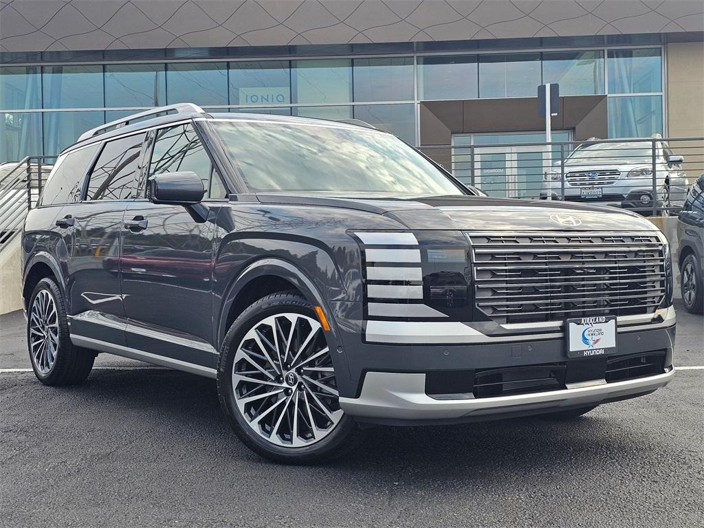 V6 8-Speed Automatic AWD 4D Sport Utility Ecotronic Gray Pearl 14 Speakers, 3rd row seats: split-bench, 4-Wheel Disc Brakes, ABS brakes, Air Conditioning, Alloy wheels, AM/FM radio: SiriusXM, Apple CarPlay & Android Auto, Audio memory, Auto High-beam Headlights, Auto-dimming door mirrors, Auto-dimming Rear-View mirror, Auto-leveling suspension, Automatic temperature control, Brake assist, Bumpers: body-color, Cargo Blocks, Cargo Net, Carpeted Floor Mats, Compass, Delay-off headlights, Driver door bin, Driver vanity mirror, Dual front impact airbags, Dual front side impact airbags, Electronic Stability Control, Emergency communication system: Bluelink+, Exterior Parking Camera Rear, First Aid Kit, Four wheel independent suspension, Front anti-roll bar, Front Bucket Seats, Front Center Armrest, Front dual zone A/C, Front reading lights, Fully automatic headlights, Garage door transmitter: HomeLink, Genuine wood console insert, Genuine wood dashboard insert, Heads-Up Display, Heated & Ventilated Front Bucket Seats, Heated door mirrors, Heated front seats, Heated rear seats, Heated steering wheel, HVAC memory, Illuminated entry, Knee airbag, Leather steering wheel, Low tire pressure warning, Memory seat, Navigation System, Occupant sensing airbag, Option Group 01, Outside temperature display, Overhead airbag, Overhead console, Panic alarm, Passenger door bin, Passenger vanity mirror, Power door mirrors, Power driver seat, Power Liftgate, Power moonroof, Power passenger seat, Power steering, Power windows, Premium Nappa Leather Seat Trim, Radio data system, Radio: Infotainment Navigation System, Rain sensing wipers, Rear air conditioning, Rear anti-roll bar, Rear audio controls, Rear reading lights, Rear side impact airbag, Rear window defroster, Rear window wiper, Reclining 3rd row seat, Remote keyless entry, Security system, Severe Weather Kit, Speed control, Split folding rear seat, Spoiler, Steering wheel mounted audio controls, Tachometer, Telescoping steering wheel, Tilt steering wheel, Traction control, Trip computer, Turn signal indicator mirrors, Variably intermittent wipers, Ventilated front seats, Ventilated rear seats, Wheels: 21" x 8.5J Alloy. Prices good through 5-31-2025. Kirkland Price includes:$1250 - Hyundai HMF Dealer Choice : $1250 discount and 5.99% APR for 24 months. $44.32 per $1000 financed. Available to well qualified buyers who finance through Hyundai Motor Finance. H704.