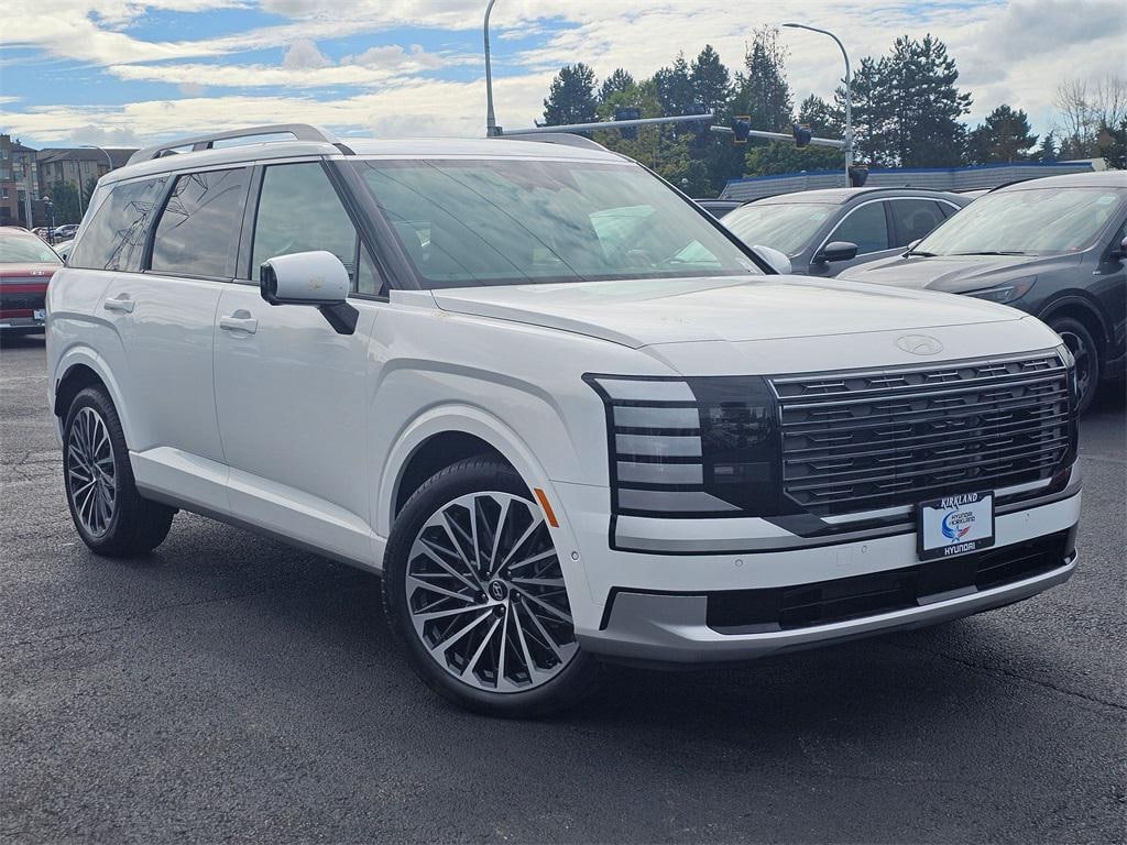 V6 8-Speed Automatic AWD 4D Sport Utility Creamy White Pearl 14 Speakers, 3rd row seats: split-bench, 4-Wheel Disc Brakes, ABS brakes, Air Conditioning, Alloy wheels, AM/FM radio: SiriusXM, Apple CarPlay & Android Auto, Audio memory, Auto High-beam Headlights, Auto-dimming door mirrors, Auto-dimming Rear-View mirror, Auto-leveling suspension, Automatic temperature control, Brake assist, Bumpers: body-color, Cargo Cover, Cargo Net, Cargo Tray, Carpeted Floor Mats, Compass, Delay-off headlights, Driver door bin, Driver vanity mirror, Dual front impact airbags, Dual front side impact airbags, Electronic Stability Control, Emergency communication system: Bluelink+, Exterior Parking Camera Rear, Four wheel independent suspension, Front anti-roll bar, Front Bucket Seats, Front Center Armrest, Front dual zone A/C, Front reading lights, Fully automatic headlights, Garage door transmitter: HomeLink, Genuine wood console insert, Genuine wood dashboard insert, Heads-Up Display, Heated & Ventilated Front Bucket Seats, Heated door mirrors, Heated front seats, Heated rear seats, Heated steering wheel, HVAC memory, Illuminated entry, Knee airbag, Leather steering wheel, Low tire pressure warning, Memory seat, Navigation System, Occupant sensing airbag, Option Group 01, Outside temperature display, Overhead airbag, Overhead console, Panic alarm, Passenger door bin, Passenger vanity mirror, Power door mirrors, Power driver seat, Power Liftgate, Power moonroof, Power passenger seat, Power steering, Power windows, Premium Nappa Leather Seat Trim, Radio data system, Radio: Infotainment Navigation System, Rain sensing wipers, Rear air conditioning, Rear anti-roll bar, Rear audio controls, Rear reading lights, Rear side impact airbag, Rear window defroster, Rear window wiper, Reclining 3rd row seat, Remote keyless entry, Security system, Speed control, Split folding rear seat, Spoiler, Steering wheel mounted audio controls, Tachometer, Telescoping steering wheel, Tilt steering wheel, Traction control, Trip computer, Turn signal indicator mirrors, Variably intermittent wipers, Ventilated front seats, Ventilated rear seats, Wheels: 21" x 8.5J Alloy. Prices good through 5-31-2025. Kirkland Price includes:$1250 - Hyundai HMF Dealer Choice : $1250 discount and 5.99% APR for 24 months. $44.32 per $1000 financed. Available to well qualified buyers who finance through Hyundai Motor Finance. H704.
