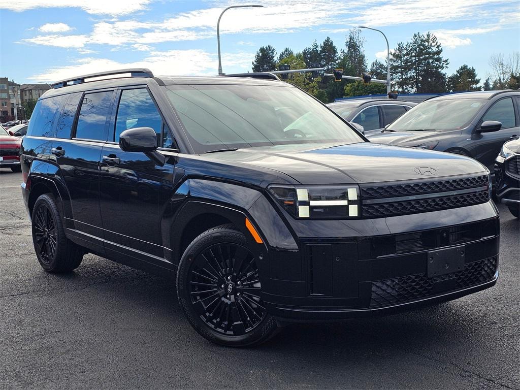 I4 6-Speed Automatic with Shiftronic AWD 4D Sport Utility Phantom Black I4, 12 Speakers, 3rd row seats: bench, 4-Wheel Disc Brakes, ABS brakes, Air Conditioning, All Season Fitted Liners, Alloy wheels, AM/FM radio: SiriusXM, Apple CarPlay & Android Auto, Auto High-beam Headlights, Auto-dimming Rear-View mirror, Automatic temperature control, Brake assist, Bumpers: body-color, Cargo Cover/Screen, Cargo Net, Cargo Tray, Carpeted Floor Mats, Delay-off headlights, Driver door bin, Driver vanity mirror, Dual front impact airbags, Dual front side impact airbags, Electronic Stability Control, Emergency communication system, Exterior Parking Camera Rear, First Aid Kit, Four wheel independent suspension, Front anti-roll bar, Front Bucket Seats, Front Center Armrest, Front dual zone A/C, Front reading lights, Fully automatic headlights, Garage door transmitter: HomeLink, Heads-Up Display, Heated & Ventilated Front Bucket Seats, Heated door mirrors, Heated front seats, Heated rear seats, Heated steering wheel, Illuminated entry, Knee airbag, Leather steering wheel, Low tire pressure warning, Memory seat, Navigation System, Occupant sensing airbag, Option Group 01, Outside temperature display, Overhead airbag, Overhead console, Panic alarm, Passenger door bin, Passenger vanity mirror, Power door mirrors, Power driver seat, Power Liftgate, Power moonroof, Power passenger seat, Power steering, Power windows, Quilted Premium Nappa Leather Seat Trim, Radio: AM/FM/HD Bose Premium Audio System, Rain sensing wipers, Rear anti-roll bar, Rear side impact airbag, Rear window defroster, Rear window wiper, Remote keyless entry, Roadside Assistance Kit, Security system, Speed control, Speed-sensing steering, Split folding rear seat, Spoiler, Steering wheel mounted audio controls, Tachometer, Telescoping steering wheel, Tilt steering wheel, Traction control, Transverse Panel, Trip computer, Turn signal indicator mirrors, Variably intermittent wipers, Ventilated front seats, Wheels: 20" x 8.5J Unique Dark Finish Alloy, I4. Prices good through 5-31-2025. Kirkland Price includes:$3000 - Hyundai HMF Dealer Choice : $3000 discount and 5.99% APR for 24 months. $44.32 per $1000 financed. Available to well qualified buyers who finance through Hyundai Motor Finance. H704.