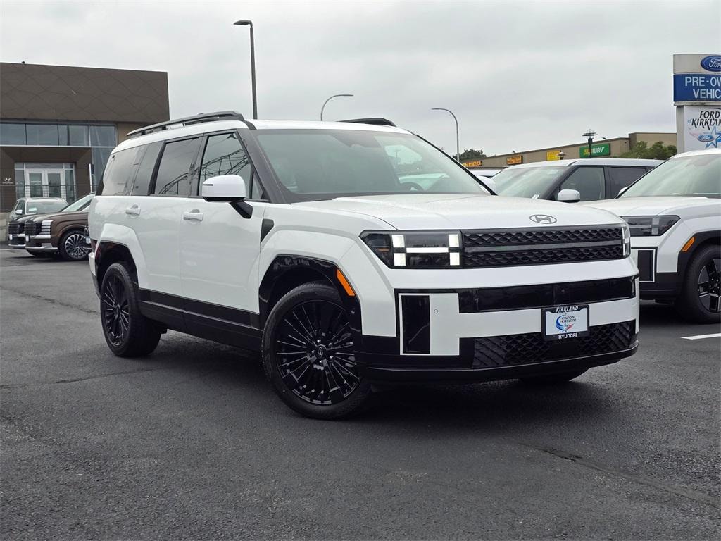 I4 6-Speed Automatic with Shiftronic AWD 4D Sport Utility Serenity White I4, 12 Speakers, 3rd row seats: bench, 4-Wheel Disc Brakes, ABS brakes, Air Conditioning, All Season Fitted Liners, Alloy wheels, AM/FM radio: SiriusXM, Apple CarPlay & Android Auto, Auto High-beam Headlights, Auto-dimming Rear-View mirror, Automatic temperature control, Brake assist, Bumpers: body-color, Cargo Cover/Screen, Cargo Net, Cargo Tray, Carpeted Floor Mats, Delay-off headlights, Driver door bin, Driver vanity mirror, Dual front impact airbags, Dual front side impact airbags, Electronic Stability Control, Emergency communication system, Exterior Parking Camera Rear, First Aid Kit, Four wheel independent suspension, Front anti-roll bar, Front Bucket Seats, Front Center Armrest, Front dual zone A/C, Front reading lights, Fully automatic headlights, Garage door transmitter: HomeLink, Heads-Up Display, Heated & Ventilated Front Bucket Seats, Heated door mirrors, Heated front seats, Heated rear seats, Heated steering wheel, Illuminated entry, Knee airbag, Leather steering wheel, Low tire pressure warning, Memory seat, Navigation System, Occupant sensing airbag, Option Group 01, Outside temperature display, Overhead airbag, Overhead console, Panic alarm, Passenger door bin, Passenger vanity mirror, Power door mirrors, Power driver seat, Power Liftgate, Power moonroof, Power passenger seat, Power steering, Power windows, Quilted Premium Nappa Leather Seat Trim, Radio: AM/FM/HD Bose Premium Audio System, Rain sensing wipers, Rear anti-roll bar, Rear side impact airbag, Rear window defroster, Rear window wiper, Remote keyless entry, Roadside Assistance Kit, Security system, Speed control, Speed-sensing steering, Split folding rear seat, Spoiler, Steering wheel mounted audio controls, Tachometer, Telescoping steering wheel, Tilt steering wheel, Traction control, Transverse Panel, Trip computer, Turn signal indicator mirrors, Variably intermittent wipers, Ventilated front seats, Wheels: 20" x 8.5J Unique Dark Finish Alloy, I4. Prices good through 5-31-2025. Kirkland Price includes:$3000 - Hyundai HMF Dealer Choice : $3000 discount and 5.99% APR for 24 months. $44.32 per $1000 financed. Available to well qualified buyers who finance through Hyundai Motor Finance. H704.
