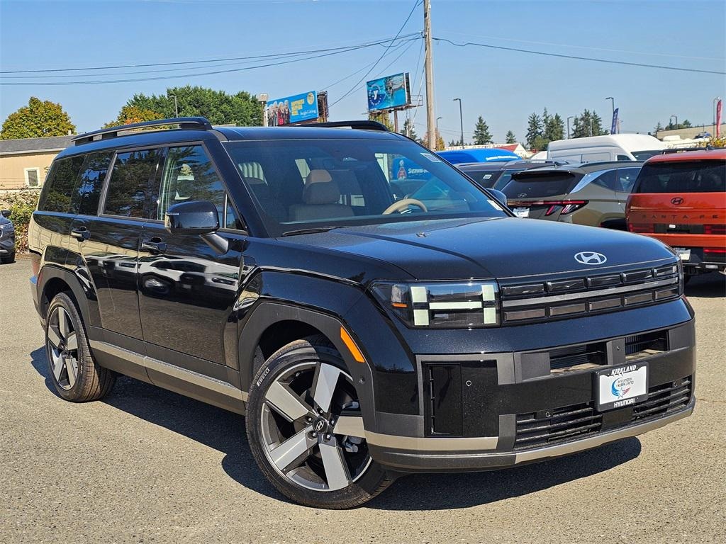 I4 6-Speed Automatic with Shiftronic AWD 4D Sport Utility Phantom Black I4, 12 Speakers, 3rd row seats: bench, 4-Wheel Disc Brakes, ABS brakes, Air Conditioning, Alloy wheels, AM/FM radio: SiriusXM, Apple CarPlay & Android Auto, Auto High-beam Headlights, Auto-dimming Rear-View mirror, Automatic temperature control, Brake assist, Bumpers: body-color, Cargo Blocks, Cargo Net, Cargo Tray, Carpeted Floor Mats, Delay-off headlights, Driver door bin, Driver vanity mirror, Dual front impact airbags, Dual front side impact airbags, Electronic Stability Control, Emergency communication system, Exterior Parking Camera Rear, First Aid Kit, Four wheel independent suspension, Front anti-roll bar, Front Bucket Seats, Front Center Armrest, Front dual zone A/C, Front reading lights, Fully automatic headlights, Garage door transmitter: HomeLink, Heated & Ventilated Front Bucket Seats, Heated door mirrors, Heated front seats, Heated rear seats, Heated steering wheel, Illuminated entry, Knee airbag, Leather Seat Trim, Leather steering wheel, Low tire pressure warning, Memory seat, Navigation System, Occupant sensing airbag, Option Group 01, Outside temperature display, Overhead airbag, Overhead console, Panic alarm, Passenger door bin, Passenger vanity mirror, Power door mirrors, Power driver seat, Power Liftgate, Power moonroof, Power passenger seat, Power steering, Power windows, Radio: AM/FM/HD Bose Premium Audio System, Rain sensing wipers, Rear anti-roll bar, Rear side impact airbag, Rear window defroster, Rear window wiper, Remote keyless entry, Security system, Speed control, Speed-sensing steering, Split folding rear seat, Spoiler, Steering wheel mounted audio controls, Tachometer, Telescoping steering wheel, Tilt steering wheel, Tow Hitch, Traction control, Trip computer, Turn signal indicator mirrors, Variably intermittent wipers, Ventilated front seats, Wheels: 20" x 8.5J Alloy, I4. Prices good through 5-31-2025. Kirkland Price includes:$4250 - Hyundai HMF Dealer Choice : $4250 discount and 5.49% APR for 24 months. $44.09 per $1000 financed. Available to well qualified buyers who finance through Hyundai Motor Finance. H704.