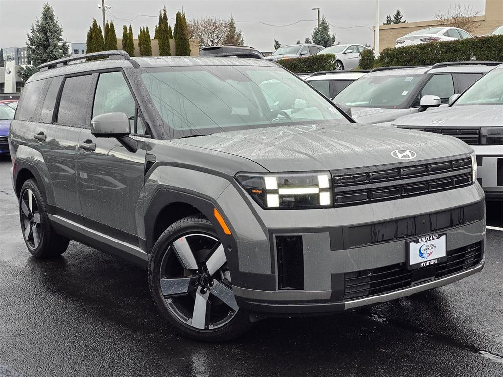 I4 6-Speed Automatic with Shiftronic AWD 4D Sport Utility Hampton Gray I4, 12 Speakers, 3rd row seats: bench, 4-Wheel Disc Brakes, 7-Passenger Bench Seating, ABS brakes, Air Conditioning, Alloy wheels, AM/FM radio: SiriusXM, Apple CarPlay & Android Auto, Auto High-beam Headlights, Auto-dimming Rear-View mirror, Automatic temperature control, Brake assist, Bumpers: body-color, Cargo Blocks, Cargo Cover/Screen, Cargo Net, Carpeted Floor Mats, Delay-off headlights, Driver door bin, Driver vanity mirror, Dual front impact airbags, Dual front side impact airbags, Electronic Stability Control, Emergency communication system, Exterior Parking Camera Rear, First Aid Kit, Four wheel independent suspension, Front anti-roll bar, Front Bucket Seats, Front Center Armrest, Front dual zone A/C, Front reading lights, Fully automatic headlights, Garage door transmitter: HomeLink, Heated and Ventilated Front Bucket Seats, Heated door mirrors, Heated front seats, Heated rear seats, Heated steering wheel, Illuminated entry, Knee airbag, Leather Seat Trim, Leather steering wheel, Low tire pressure warning, Memory seat, Navigation System, Occupant sensing airbag, Option Group 02, Outside temperature display, Overhead airbag, Overhead console, Panic alarm, Passenger door bin, Passenger vanity mirror, Power door mirrors, Power driver seat, Power Liftgate, Power moonroof, Power passenger seat, Power steering, Power windows, Radio: AM/FM/HD Bose Premium Audio System, Rain sensing wipers, Rear anti-roll bar, Rear side impact airbag, Rear window defroster, Rear window wiper, Remote keyless entry, Security system, Speed control, Speed-sensing steering, Split folding rear seat, Spoiler, Steering wheel mounted audio controls, Tachometer, Telescoping steering wheel, Tilt steering wheel, Traction control, Trip computer, Turn signal indicator mirrors, Variably intermittent wipers, Ventilated front seats, Wheels: 20" x 8.5J Alloy, I4. Prices good through 5-31-2025. Kirkland Price includes:$4000 - Hyundai HMF Dealer Choice : $4000 discount and 5.39% APR for 24 months. $44.05 per $1000 financed. Available to well qualified buyers who finance through Hyundai Motor Finance. H704.