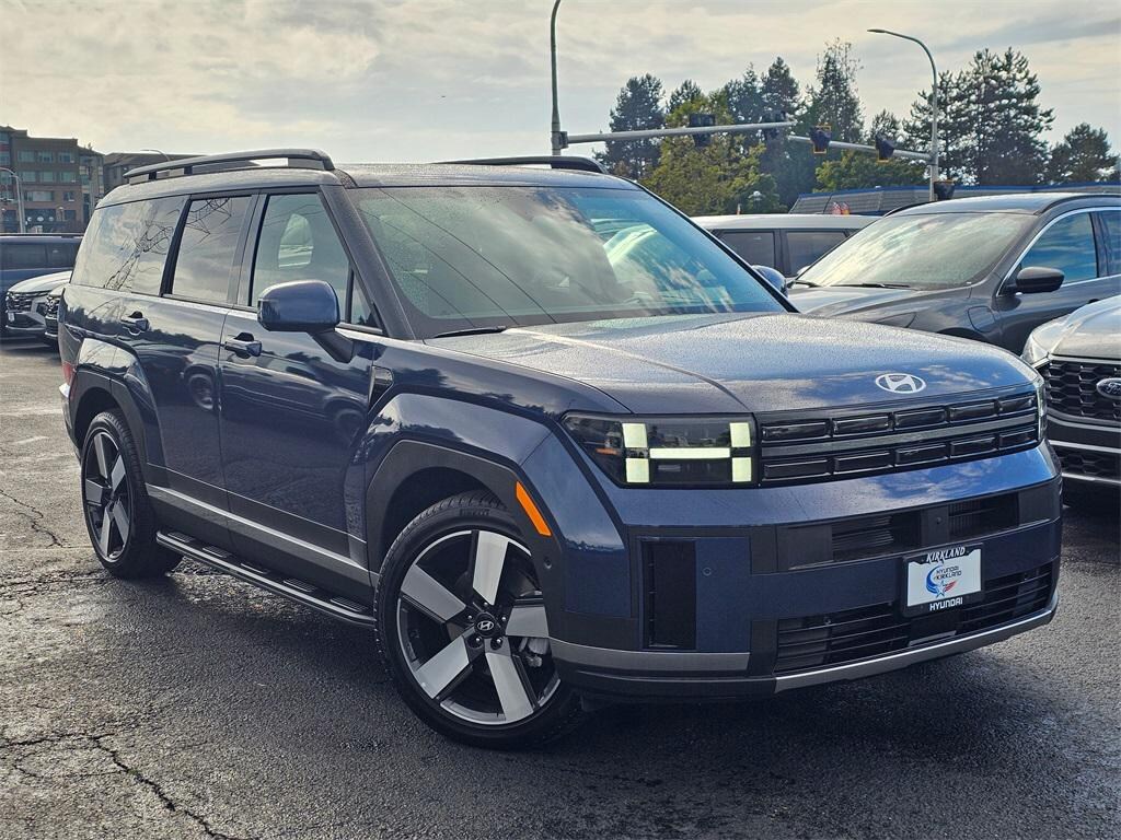 I4 6-Speed Automatic with Shiftronic AWD 4D Sport Utility Atlantis Blue I4, 12 Speakers, 3rd row seats: bench, 4-Wheel Disc Brakes, ABS brakes, Air Conditioning, All Season Fitted Liners, Alloy wheels, AM/FM radio: SiriusXM, Apple CarPlay & Android Auto, Auto High-beam Headlights, Auto-dimming Rear-View mirror, Automatic temperature control, Brake assist, Bumpers: body-color, Cargo Net, Carpeted Floor Mats, Delay-off headlights, Driver door bin, Driver vanity mirror, Dual front impact airbags, Dual front side impact airbags, Electronic Stability Control, Emergency communication system, Exterior Parking Camera Rear, Four wheel independent suspension, Front anti-roll bar, Front Bucket Seats, Front Center Armrest, Front dual zone A/C, Front reading lights, Fully automatic headlights, Garage door transmitter: HomeLink, Heated & Ventilated Front Bucket Seats, Heated door mirrors, Heated front seats, Heated rear seats, Heated steering wheel, Illuminated entry, Knee airbag, Leather Seat Trim, Leather steering wheel, Low tire pressure warning, Memory seat, Navigation System, Occupant sensing airbag, Option Group 01, Outside temperature display, Overhead airbag, Overhead console, Panic alarm, Passenger door bin, Passenger vanity mirror, Power door mirrors, Power driver seat, Power Liftgate, Power moonroof, Power passenger seat, Power steering, Power windows, Radio: AM/FM/HD Bose Premium Audio System, Rain sensing wipers, Rear anti-roll bar, Rear side impact airbag, Rear window defroster, Rear window wiper, Remote keyless entry, Security system, Side Steps, Speed control, Speed-sensing steering, Split folding rear seat, Spoiler, Steering wheel mounted audio controls, Tachometer, Telescoping steering wheel, Tilt steering wheel, Traction control, Trip computer, Turn signal indicator mirrors, Variably intermittent wipers, Ventilated front seats, Wheels: 20" x 8.5J Alloy, I4. Prices good through 5-31-2025. Kirkland Price includes:$4250 - Hyundai HMF Dealer Choice : $4250 discount and 5.49% APR for 24 months. $44.09 per $1000 financed. Available to well qualified buyers who finance through Hyundai Motor Finance. H704.