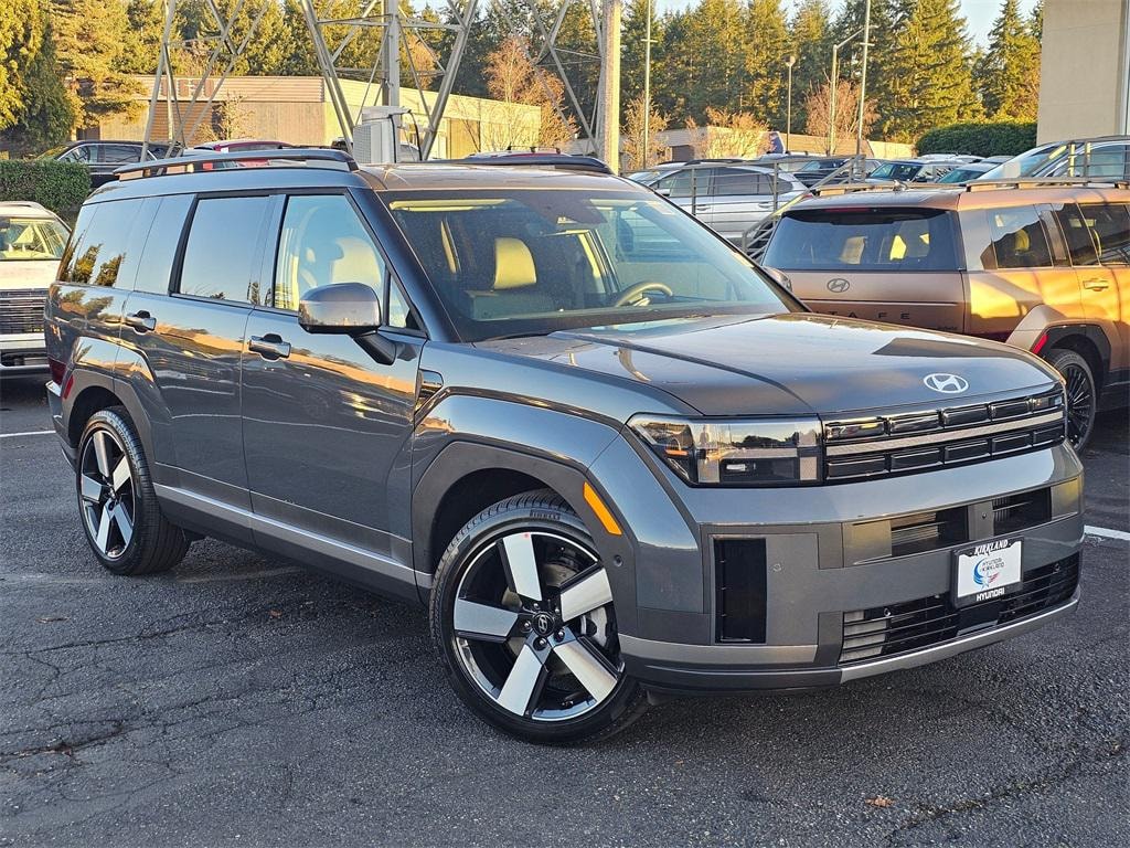 I4 6-Speed Automatic with Shiftronic AWD 4D Sport Utility Ecotronic Gray I4, 12 Speakers, 3rd row seats: bench, 4-Wheel Disc Brakes, 7-Passenger Bench Seating, ABS brakes, Air Conditioning, Alloy wheels, AM/FM radio: SiriusXM, Apple CarPlay & Android Auto, Auto High-beam Headlights, Auto-dimming Rear-View mirror, Automatic temperature control, Brake assist, Bumpers: body-color, Cargo Cover/Screen, Cargo Net, Carpeted Floor Mats, Delay-off headlights, Driver door bin, Driver vanity mirror, Dual front impact airbags, Dual front side impact airbags, Electronic Stability Control, Emergency communication system, Exterior Parking Camera Rear, First Aid Kit, Four wheel independent suspension, Front anti-roll bar, Front Bucket Seats, Front Center Armrest, Front dual zone A/C, Front reading lights, Fully automatic headlights, Garage door transmitter: HomeLink, Heated and Ventilated Front Bucket Seats, Heated door mirrors, Heated front seats, Heated rear seats, Heated steering wheel, Illuminated entry, Knee airbag, Leather Seat Trim, Leather steering wheel, Low tire pressure warning, Memory seat, Navigation System, Occupant sensing airbag, Option Group 02, Outside temperature display, Overhead airbag, Overhead console, Panic alarm, Passenger door bin, Passenger vanity mirror, Power door mirrors, Power driver seat, Power Liftgate, Power moonroof, Power passenger seat, Power steering, Power windows, Radio: AM/FM/HD Bose Premium Audio System, Rain sensing wipers, Rear anti-roll bar, Rear side impact airbag, Rear window defroster, Rear window wiper, Remote keyless entry, Roadside Assistance Kit, Security system, Speed control, Speed-sensing steering, Split folding rear seat, Spoiler, Steering wheel mounted audio controls, Tachometer, Telescoping steering wheel, Tilt steering wheel, Traction control, Trip computer, Turn signal indicator mirrors, Variably intermittent wipers, Ventilated front seats, Wheels: 20" x 8.5J Alloy, I4. Prices good through 5-31-2025. Kirkland Price includes:$4000 - Hyundai HMF Dealer Choice : $4000 discount and 5.39% APR for 24 months. $44.05 per $1000 financed. Available to well qualified buyers who finance through Hyundai Motor Finance. H704.