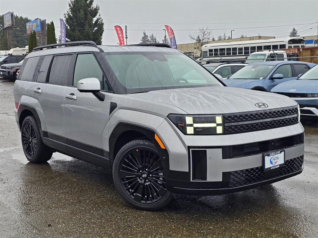 I4 6-Speed Automatic with Shiftronic AWD 4D Sport Utility Shimmering Silver I4, 12 Speakers, 3rd row seats: bench, 4-Wheel Disc Brakes, ABS brakes, Air Conditioning, Alloy wheels, AM/FM radio: SiriusXM, Apple CarPlay & Android Auto, Auto High-beam Headlights, Auto-dimming Rear-View mirror, Automatic temperature control, Brake assist, Bumpers: body-color, Cargo Cover/Screen, Cargo Net, Carpeted Floor Mats, Delay-off headlights, Driver door bin, Driver vanity mirror, Dual front impact airbags, Dual front side impact airbags, Electronic Stability Control, Emergency communication system, Exterior Parking Camera Rear, First Aid Kit, Four wheel independent suspension, Front anti-roll bar, Front Bucket Seats, Front Center Armrest, Front dual zone A/C, Front reading lights, Fully automatic headlights, Garage door transmitter: HomeLink, Heads-Up Display, Heated & Ventilated Front Bucket Seats, Heated door mirrors, Heated front seats, Heated rear seats, Heated steering wheel, Illuminated entry, Knee airbag, Leather steering wheel, Low tire pressure warning, Memory seat, Navigation System, Occupant sensing airbag, Option Group 01, Outside temperature display, Overhead airbag, Overhead console, Panic alarm, Passenger door bin, Passenger vanity mirror, Power door mirrors, Power driver seat, Power Liftgate, Power moonroof, Power passenger seat, Power steering, Power windows, Quilted Premium Nappa Leather Seat Trim, Radio: AM/FM/HD Bose Premium Audio System, Rain sensing wipers, Rear anti-roll bar, Rear side impact airbag, Rear window defroster, Rear window wiper, Remote keyless entry, Security system, Severe Weather Kit, Speed control, Speed-sensing steering, Split folding rear seat, Spoiler, Steering wheel mounted audio controls, Tachometer, Telescoping steering wheel, Tilt steering wheel, Traction control, Trip computer, Turn signal indicator mirrors, Variably intermittent wipers, Ventilated front seats, Wheels: 20" x 8.5J Unique Dark Finish Alloy, I4. Prices good through 5-31-2025. Kirkland Price includes:$4250 - Hyundai HMF Dealer Choice : $4250 discount and 5.49% APR for 24 months. $44.09 per $1000 financed. Available to well qualified buyers who finance through Hyundai Motor Finance. H704.