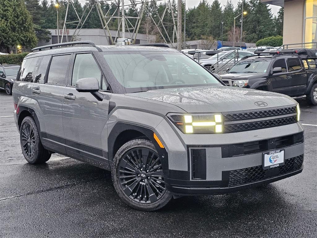 I4 6-Speed Automatic with Shiftronic AWD 4D Sport Utility Hampton Gray I4, 12 Speakers, 3rd row seats: bench, 4-Wheel Disc Brakes, ABS brakes, Air Conditioning, Alloy wheels, AM/FM radio: SiriusXM, Apple CarPlay & Android Auto, Auto High-beam Headlights, Auto-dimming Rear-View mirror, Automatic temperature control, Brake assist, Bumpers: body-color, Cargo Cover/Screen, Cargo Net, Carpeted Floor Mats, Delay-off headlights, Driver door bin, Driver vanity mirror, Dual front impact airbags, Dual front side impact airbags, Electronic Stability Control, Emergency communication system, Exterior Parking Camera Rear, First Aid Kit, Four wheel independent suspension, Front anti-roll bar, Front Bucket Seats, Front Center Armrest, Front dual zone A/C, Front reading lights, Fully automatic headlights, Garage door transmitter: HomeLink, Heads-Up Display, Heated and Ventilated Front Bucket Seats, Heated door mirrors, Heated front seats, Heated rear seats, Heated steering wheel, Illuminated entry, Knee airbag, Leather steering wheel, Low tire pressure warning, Memory seat, Navigation System, Occupant sensing airbag, Option Group 01, Outside temperature display, Overhead airbag, Overhead console, Panic alarm, Passenger door bin, Passenger vanity mirror, Power door mirrors, Power driver seat, Power Liftgate, Power moonroof, Power passenger seat, Power steering, Power windows, Quilted Premium Nappa Leather Seat Trim, Radio: AM/FM/HD Bose Premium Audio System, Rain sensing wipers, Rear anti-roll bar, Rear side impact airbag, Rear window defroster, Rear window wiper, Remote keyless entry, Roadside Assistance Kit, Security system, Speed control, Speed-sensing steering, Split folding rear seat, Spoiler, Steering wheel mounted audio controls, Tachometer, Telescoping steering wheel, Tilt steering wheel, Traction control, Trip computer, Turn signal indicator mirrors, Variably intermittent wipers, Ventilated front seats, Wheels: 20" x 8.5J Unique Dark Finish Alloy, I4. Prices good through 5-31-2025. Kirkland Price includes:$4000 - Hyundai HMF Dealer Choice : $4000 discount and 5.39% APR for 24 months. $44.05 per $1000 financed. Available to well qualified buyers who finance through Hyundai Motor Finance. H704.