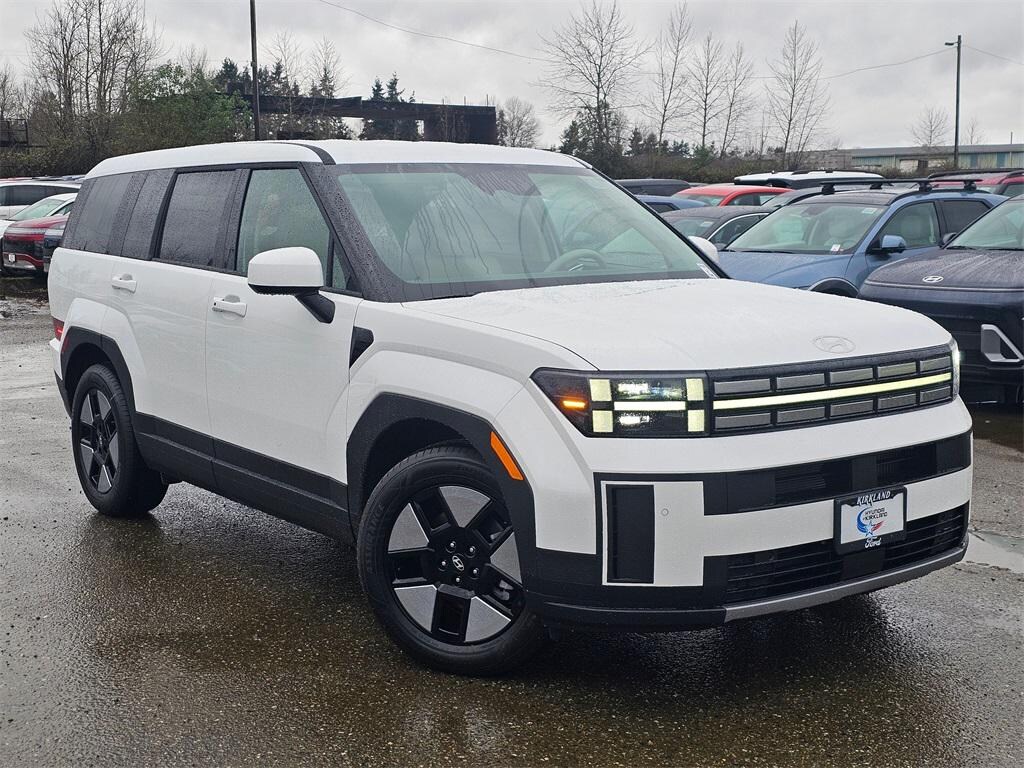 I4 6-Speed Automatic with Shiftronic AWD 4D Sport Utility Serenity White I4, 18" x 7.5J Alloy Wheels, 3rd row seats: bench, 4-Wheel Disc Brakes, 6 Speakers, ABS brakes, Air Conditioning, Alloy wheels, AM/FM radio: SiriusXM, Apple CarPlay & Android Auto, Auto High-beam Headlights, Automatic temperature control, Brake assist, Bumpers: body-color, Cargo Cover/Screen, Cargo Net, Carpeted Floor Mats, Delay-off headlights, Driver door bin, Driver vanity mirror, Dual front impact airbags, Dual front side impact airbags, Electronic Stability Control, Emergency communication system, Exterior Parking Camera Rear, First Aid Kit, Four wheel independent suspension, Front anti-roll bar, Front Bucket Seats, Front Center Armrest, Front dual zone A/C, Front reading lights, Fully automatic headlights, Heated door mirrors, Illuminated entry, Knee airbag, Leather steering wheel, Low tire pressure warning, Occupant sensing airbag, Option Group 01, Outside temperature display, Overhead airbag, Overhead console, Panic alarm, Passenger door bin, Passenger vanity mirror, Power door mirrors, Power Liftgate, Power steering, Power windows, Radio: AM/FM/HD Display Audio, Rear anti-roll bar, Rear seat center armrest, Rear side impact airbag, Rear window defroster, Rear window wiper, Remote keyless entry, Roadside Assistance Kit, Security system, Speed control, Speed-sensing steering, Split folding rear seat, Spoiler, Steering wheel mounted audio controls, Tachometer, Telescoping steering wheel, Tilt steering wheel, Traction control, Trip computer, Variably intermittent wipers, YES Essentials Stain-Resistant Cloth Seat Trim, I4. Prices good through 5-31-2025. Kirkland Price includes:$4000 - Hyundai HMF Dealer Choice : $4000 discount and 5.39% APR for 24 months. $44.05 per $1000 financed. Available to well qualified buyers who finance through Hyundai Motor Finance. H704.