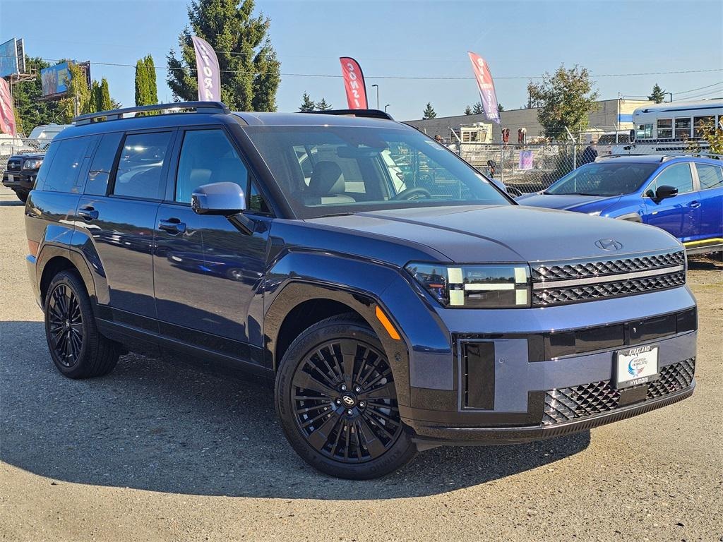 I4 6-Speed Automatic with Shiftronic AWD 4D Sport Utility Atlantis Blue I4, 12 Speakers, 3rd row seats: bench, 4-Wheel Disc Brakes, ABS brakes, Air Conditioning, Alloy wheels, AM/FM radio: SiriusXM, Apple CarPlay & Android Auto, Auto High-beam Headlights, Auto-dimming Rear-View mirror, Automatic temperature control, Brake assist, Bumpers: body-color, Cargo Net, Carpeted Floor Mats, Delay-off headlights, Driver door bin, Driver vanity mirror, Dual front impact airbags, Dual front side impact airbags, Electronic Stability Control, Emergency communication system, Exterior Parking Camera Rear, First Aid Kit, Four wheel independent suspension, Front anti-roll bar, Front Bucket Seats, Front Center Armrest, Front dual zone A/C, Front reading lights, Fully automatic headlights, Garage door transmitter: HomeLink, Heads-Up Display, Heated & Ventilated Front Bucket Seats, Heated door mirrors, Heated front seats, Heated rear seats, Heated steering wheel, Illuminated entry, Knee airbag, Leather steering wheel, Low tire pressure warning, Memory seat, Navigation System, Occupant sensing airbag, Option Group 01, Outside temperature display, Overhead airbag, Overhead console, Panic alarm, Passenger door bin, Passenger vanity mirror, Power door mirrors, Power driver seat, Power Liftgate, Power moonroof, Power passenger seat, Power steering, Power windows, Quilted Premium Nappa Leather Seat Trim, Radio: AM/FM/HD Bose Premium Audio System, Rain sensing wipers, Rear anti-roll bar, Rear side impact airbag, Rear window defroster, Rear window wiper, Remote keyless entry, Roadside Assistance Kit, Security system, Speed control, Speed-sensing steering, Split folding rear seat, Spoiler, Steering wheel mounted audio controls, Tachometer, Telescoping steering wheel, Tilt steering wheel, Tow & Go Package, Tow Hitch, Tow Hitch Ball Mount Kit, Traction control, Trip computer, Turn signal indicator mirrors, Variably intermittent wipers, Ventilated front seats, Wheels: 20" x 8.5J Unique Dark Finish Alloy, I4. Prices good through 5-31-2025. Kirkland Price includes:$4250 - Hyundai HMF Dealer Choice : $4250 discount and 5.49% APR for 24 months. $44.09 per $1000 financed. Available to well qualified buyers who finance through Hyundai Motor Finance. H704.