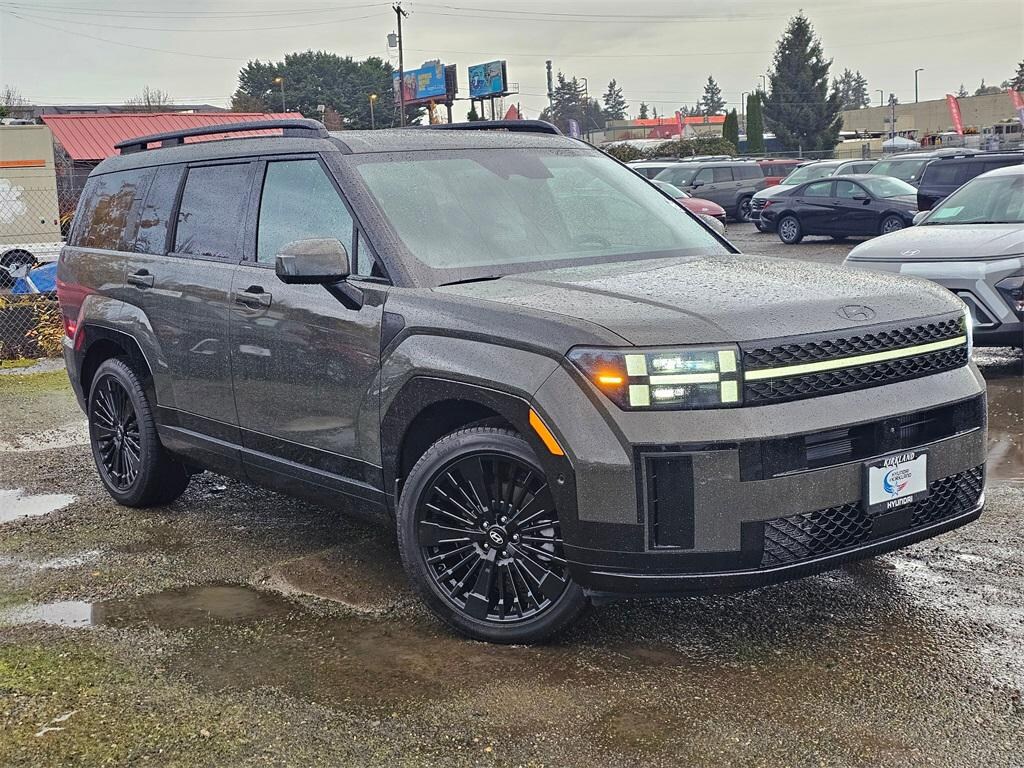 I4 6-Speed Automatic with Shiftronic AWD 4D Sport Utility Rockwood Green I4, 12 Speakers, 3rd row seats: bench, 4-Wheel Disc Brakes, ABS brakes, Air Conditioning, All Season Fitted Liners, Alloy wheels, AM/FM radio: SiriusXM, Apple CarPlay & Android Auto, Auto High-beam Headlights, Auto-dimming Rear-View mirror, Automatic temperature control, Brake assist, Bumpers: body-color, Cargo Cover/Screen, Cargo Net, Carpeted Floor Mats, Delay-off headlights, Driver door bin, Driver vanity mirror, Dual front impact airbags, Dual front side impact airbags, Electronic Stability Control, Emergency communication system, Exterior Parking Camera Rear, First Aid Kit, Four wheel independent suspension, Front anti-roll bar, Front Bucket Seats, Front Center Armrest, Front dual zone A/C, Front reading lights, Fully automatic headlights, Garage door transmitter: HomeLink, Heads-Up Display, Heated & Ventilated Front Bucket Seats, Heated door mirrors, Heated front seats, Heated rear seats, Heated steering wheel, Illuminated entry, Knee airbag, Leather steering wheel, Low tire pressure warning, Memory seat, Mudguards, Navigation System, Occupant sensing airbag, Option Group 01, Outside temperature display, Overhead airbag, Overhead console, Panic alarm, Passenger door bin, Passenger vanity mirror, Power door mirrors, Power driver seat, Power Liftgate, Power moonroof, Power passenger seat, Power steering, Power windows, Quilted Premium Nappa Leather Seat Trim, Radio: AM/FM/HD Bose Premium Audio System, Rain sensing wipers, Rear anti-roll bar, Rear side impact airbag, Rear window defroster, Rear window wiper, Remote keyless entry, Roadside Assistance Kit, Security system, Speed control, Speed-sensing steering, Split folding rear seat, Spoiler, Steering wheel mounted audio controls, Tachometer, Telescoping steering wheel, Tilt steering wheel, Traction control, Transverse Panel, Trip computer, Turn signal indicator mirrors, Variably intermittent wipers, Ventilated front seats, Wheels: 20" x 8.5J Unique Dark Finish Alloy, I4. Prices good through 5-31-2025. Kirkland Price includes:$4250 - Hyundai HMF Dealer Choice : $4250 discount and 5.49% APR for 24 months. $44.09 per $1000 financed. Available to well qualified buyers who finance through Hyundai Motor Finance. H704.