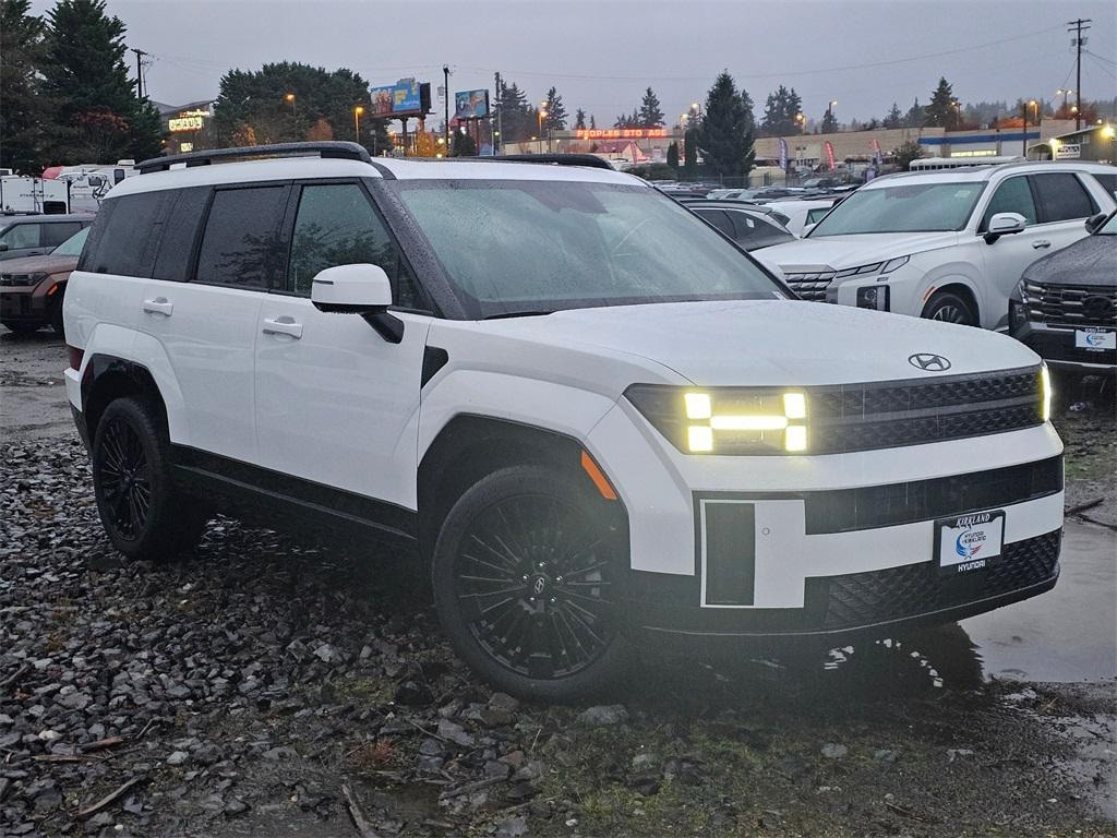 I4 6-Speed Automatic with Shiftronic AWD 4D Sport Utility Serenity White I4, 12 Speakers, 3rd row seats: bench, 4-Wheel Disc Brakes, ABS brakes, Air Conditioning, All Season Fitted Liners, Alloy wheels, AM/FM radio: SiriusXM, Apple CarPlay & Android Auto, Auto High-beam Headlights, Auto-dimming Rear-View mirror, Automatic temperature control, Brake assist, Bumpers: body-color, Cargo Cover/Screen, Cargo Net, Cargo Tray, Carpeted Floor Mats, Delay-off headlights, Driver door bin, Driver vanity mirror, Dual front impact airbags, Dual front side impact airbags, Electronic Stability Control, Emergency communication system, Exterior Parking Camera Rear, First Aid Kit, Four wheel independent suspension, Front anti-roll bar, Front Bucket Seats, Front Center Armrest, Front dual zone A/C, Front reading lights, Fully automatic headlights, Garage door transmitter: HomeLink, Heads-Up Display, Heated & Ventilated Front Bucket Seats, Heated door mirrors, Heated front seats, Heated rear seats, Heated steering wheel, Illuminated entry, Knee airbag, Leather steering wheel, Low tire pressure warning, Memory seat, Navigation System, Occupant sensing airbag, Option Group 01, Outside temperature display, Overhead airbag, Overhead console, Panic alarm, Passenger door bin, Passenger vanity mirror, Power door mirrors, Power driver seat, Power Liftgate, Power moonroof, Power passenger seat, Power steering, Power windows, Quilted Premium Nappa Leather Seat Trim, Radio: AM/FM/HD Bose Premium Audio System, Rain sensing wipers, Rear anti-roll bar, Rear side impact airbag, Rear window defroster, Rear window wiper, Remote keyless entry, Roadside Assistance Kit, Security system, Speed control, Speed-sensing steering, Split folding rear seat, Spoiler, Steering wheel mounted audio controls, Tachometer, Telescoping steering wheel, Tilt steering wheel, Traction control, Trip computer, Turn signal indicator mirrors, Variably intermittent wipers, Ventilated front seats, Wheels: 20" x 8.5J Unique Dark Finish Alloy, I4. Prices good through 5-31-2025. Kirkland Price includes:$4250 - Hyundai HMF Dealer Choice : $4250 discount and 5.49% APR for 24 months. $44.09 per $1000 financed. Available to well qualified buyers who finance through Hyundai Motor Finance. H704.
