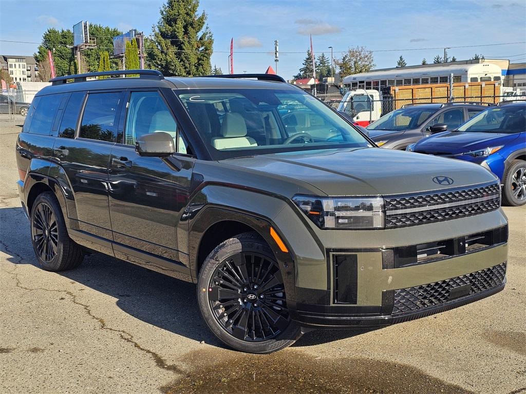 I4 6-Speed Automatic with Shiftronic AWD 4D Sport Utility Rockwood Green I4, 12 Speakers, 3rd row seats: bench, 4-Wheel Disc Brakes, ABS brakes, Air Conditioning, All Season Fitted Liners, Alloy wheels, AM/FM radio: SiriusXM, Apple CarPlay & Android Auto, Auto High-beam Headlights, Auto-dimming Rear-View mirror, Automatic temperature control, Brake assist, Bumpers: body-color, Cargo Cover/Screen, Cargo Net, Cargo Tray, Carpeted Floor Mats, Delay-off headlights, Driver door bin, Driver vanity mirror, Dual front impact airbags, Dual front side impact airbags, Electronic Stability Control, Emergency communication system, Exterior Parking Camera Rear, First Aid Kit, Four wheel independent suspension, Front anti-roll bar, Front Bucket Seats, Front Center Armrest, Front dual zone A/C, Front reading lights, Fully automatic headlights, Garage door transmitter: HomeLink, Heads-Up Display, Heated & Ventilated Front Bucket Seats, Heated door mirrors, Heated front seats, Heated rear seats, Heated steering wheel, Illuminated entry, Knee airbag, Leather steering wheel, Low tire pressure warning, Memory seat, Navigation System, Occupant sensing airbag, Option Group 01, Outside temperature display, Overhead airbag, Overhead console, Panic alarm, Passenger door bin, Passenger vanity mirror, Power door mirrors, Power driver seat, Power Liftgate, Power moonroof, Power passenger seat, Power steering, Power windows, Quilted Premium Nappa Leather Seat Trim, Radio: AM/FM/HD Bose Premium Audio System, Rain sensing wipers, Rear anti-roll bar, Rear side impact airbag, Rear window defroster, Rear window wiper, Remote keyless entry, Roadside Assistance Kit, Security system, Speed control, Speed-sensing steering, Split folding rear seat, Spoiler, Steering wheel mounted audio controls, Tachometer, Telescoping steering wheel, Tilt steering wheel, Traction control, Trip computer, Turn signal indicator mirrors, Variably intermittent wipers, Ventilated front seats, Wheels: 20" x 8.5J Unique Dark Finish Alloy, I4. Prices good through 5-31-2025. Kirkland Price includes:$4250 - Hyundai HMF Dealer Choice : $4250 discount and 5.49% APR for 24 months. $44.09 per $1000 financed. Available to well qualified buyers who finance through Hyundai Motor Finance. H704.