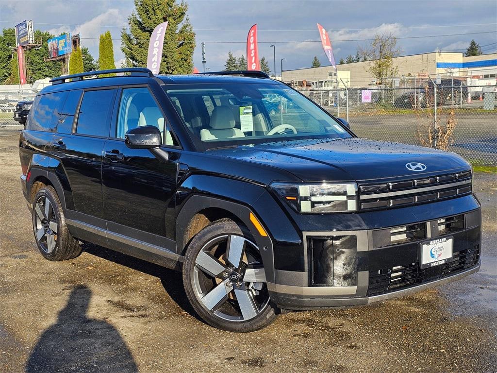 I4 6-Speed Automatic with Shiftronic AWD 4D Sport Utility Phantom Black I4, 12 Speakers, 3rd row seats: bench, 4-Wheel Disc Brakes, ABS brakes, Air Conditioning, All Season Fitted Liners, Alloy wheels, AM/FM radio: SiriusXM, Apple CarPlay & Android Auto, Auto High-beam Headlights, Auto-dimming Rear-View mirror, Automatic temperature control, Brake assist, Bumpers: body-color, Cargo Blocks, Cargo Net, Carpeted Floor Mats, Delay-off headlights, Driver door bin, Driver vanity mirror, Dual front impact airbags, Dual front side impact airbags, Electronic Stability Control, Emergency communication system, Exterior Parking Camera Rear, First Aid Kit, Four wheel independent suspension, Front anti-roll bar, Front Bucket Seats, Front Center Armrest, Front dual zone A/C, Front reading lights, Fully automatic headlights, Garage door transmitter: HomeLink, Heated & Ventilated Front Bucket Seats, Heated door mirrors, Heated front seats, Heated rear seats, Heated steering wheel, Illuminated entry, Knee airbag, Leather Seat Trim, Leather steering wheel, Low tire pressure warning, Memory seat, Navigation System, Occupant sensing airbag, Option Group 01, Outside temperature display, Overhead airbag, Overhead console, Panic alarm, Passenger door bin, Passenger vanity mirror, Power door mirrors, Power driver seat, Power Liftgate, Power moonroof, Power passenger seat, Power steering, Power windows, Radio: AM/FM/HD Bose Premium Audio System, Rain sensing wipers, Rear anti-roll bar, Rear side impact airbag, Rear window defroster, Rear window wiper, Remote keyless entry, Roadside Assistance Kit, Security system, Speed control, Speed-sensing steering, Split folding rear seat, Spoiler, Steering wheel mounted audio controls, Tachometer, Telescoping steering wheel, Tilt steering wheel, Traction control, Trip computer, Turn signal indicator mirrors, Variably intermittent wipers, Ventilated front seats, Wheels: 20" x 8.5J Alloy, I4. Prices good through 5-31-2025. Kirkland Price includes:$4250 - Hyundai HMF Dealer Choice : $4250 discount and 5.49% APR for 24 months. $44.09 per $1000 financed. Available to well qualified buyers who finance through Hyundai Motor Finance. H704.
