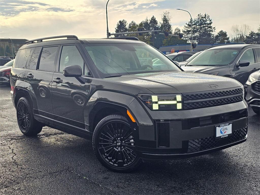 I4 6-Speed Automatic with Shiftronic AWD 4D Sport Utility Rockwood Green I4, 12 Speakers, 3rd row seats: bench, 4-Wheel Disc Brakes, ABS brakes, Air Conditioning, All Season Fitted Liners, Alloy wheels, AM/FM radio: SiriusXM, Apple CarPlay & Android Auto, Auto High-beam Headlights, Auto-dimming Rear-View mirror, Automatic temperature control, Brake assist, Bumpers: body-color, Cargo Cover/Screen, Cargo Net, Carpeted Floor Mats, Delay-off headlights, Driver door bin, Driver vanity mirror, Dual front impact airbags, Dual front side impact airbags, Electronic Stability Control, Emergency communication system, Exterior Parking Camera Rear, First Aid Kit, Four wheel independent suspension, Front anti-roll bar, Front Bucket Seats, Front Center Armrest, Front dual zone A/C, Front reading lights, Fully automatic headlights, Garage door transmitter: HomeLink, Heads-Up Display, Heated & Ventilated Front Bucket Seats, Heated door mirrors, Heated front seats, Heated rear seats, Heated steering wheel, Illuminated entry, Knee airbag, Leather steering wheel, Low tire pressure warning, Memory seat, Navigation System, Occupant sensing airbag, Option Group 01, Outside temperature display, Overhead airbag, Overhead console, Panic alarm, Passenger door bin, Passenger vanity mirror, Power door mirrors, Power driver seat, Power Liftgate, Power moonroof, Power passenger seat, Power steering, Power windows, Quilted Premium Nappa Leather Seat Trim, Radio: AM/FM/HD Bose Premium Audio System, Rain sensing wipers, Rear anti-roll bar, Rear side impact airbag, Rear window defroster, Rear window wiper, Remote keyless entry, Security system, Speed control, Speed-sensing steering, Split folding rear seat, Spoiler, Steering wheel mounted audio controls, Tachometer, Telescoping steering wheel, Tilt steering wheel, Traction control, Trip computer, Turn signal indicator mirrors, Variably intermittent wipers, Ventilated front seats, Wheels: 20" x 8.5J Unique Dark Finish Alloy, I4. Prices good through 5-31-2025. Kirkland Price includes:$4250 - Hyundai HMF Dealer Choice: $4250 discount and 5.99% APR for 24 months. $44.32 per $1000 financed. Available to well qualified buyers who finance through Hyundai Motor Finance. H704.