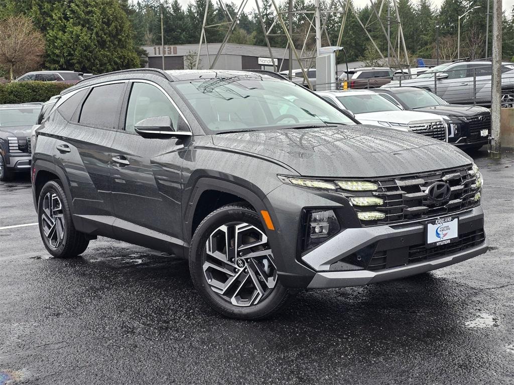 1.6L I4 DGI Hybrid Turbocharged DOHC 16V LEV3-SULEV30 6-Speed Automatic AWD 4D Sport Utility Amazon Gray 1.6L I4 DGI Hybrid Turbocharged DOHC 16V LEV3-SULEV30, 4-Wheel Disc Brakes, 8 Speakers, ABS brakes, Air Conditioning, All Season Fitted Liners, Alloy wheels, AM/FM radio: SiriusXM, Apple CarPlay & Android Auto, Auto High-beam Headlights, Auto-dimming Rear-View mirror, Automatic temperature control, Brake assist, Bumpers: body-color, Cargo Net, Cargo Tray, Carpeted Floor Mats, Delay-off headlights, Driver door bin, Driver vanity mirror, Dual front impact airbags, Dual front side impact airbags, Electronic Stability Control, Emergency communication system: None, First Aid Kit, Four wheel independent suspension, Front anti-roll bar, Front Bucket Seats, Front Center Armrest, Front dual zone A/C, Front reading lights, Fully automatic headlights, Garage door transmitter: HomeLink, Heads-Up Display, Heated and Ventilated Front Bucket Seats, Heated door mirrors, Heated front seats, Heated rear seats, Heated steering wheel, Illuminated entry, Leather steering wheel, Leather-Trimmed Seat Trim, Low tire pressure warning, Memory seat, Navigation System, Occupant sensing airbag, Option Group 01, Outside temperature display, Overhead airbag, Overhead console, Panic alarm, Passenger door bin, Passenger vanity mirror, Power door mirrors, Power driver seat, Power Liftgate, Power moonroof, Power passenger seat, Power steering, Power windows, Radio data system, Radio: Bose Premium w/AM/FM/HD Audio System, Rain sensing wipers, Rear anti-roll bar, Rear reading lights, Rear seat center armrest, Rear side impact airbag, Rear window defroster, Rear window wiper, Remote keyless entry, Security system, Speed control, Split folding rear seat, Spoiler, Steering wheel mounted audio controls, Tachometer, Telescoping steering wheel, Tilt steering wheel, Traction control, Trip computer, Turn signal indicator mirrors, Variably intermittent wipers, Ventilated front seats, Wheels: 19" x 7.5J Alloy, 1.6L I4 DGI Hybrid Turbocharged DOHC 16V LEV3-SULEV30. Prices good through 5-31-2025. Kirkland Price includes:$2750 - Hyundai HMF Dealer Choice : $2750 discount and 5.39% APR for 24 months. $44.05 per $1000 financed. Available to well qualified buyers who finance through Hyundai Motor Finance. H704.